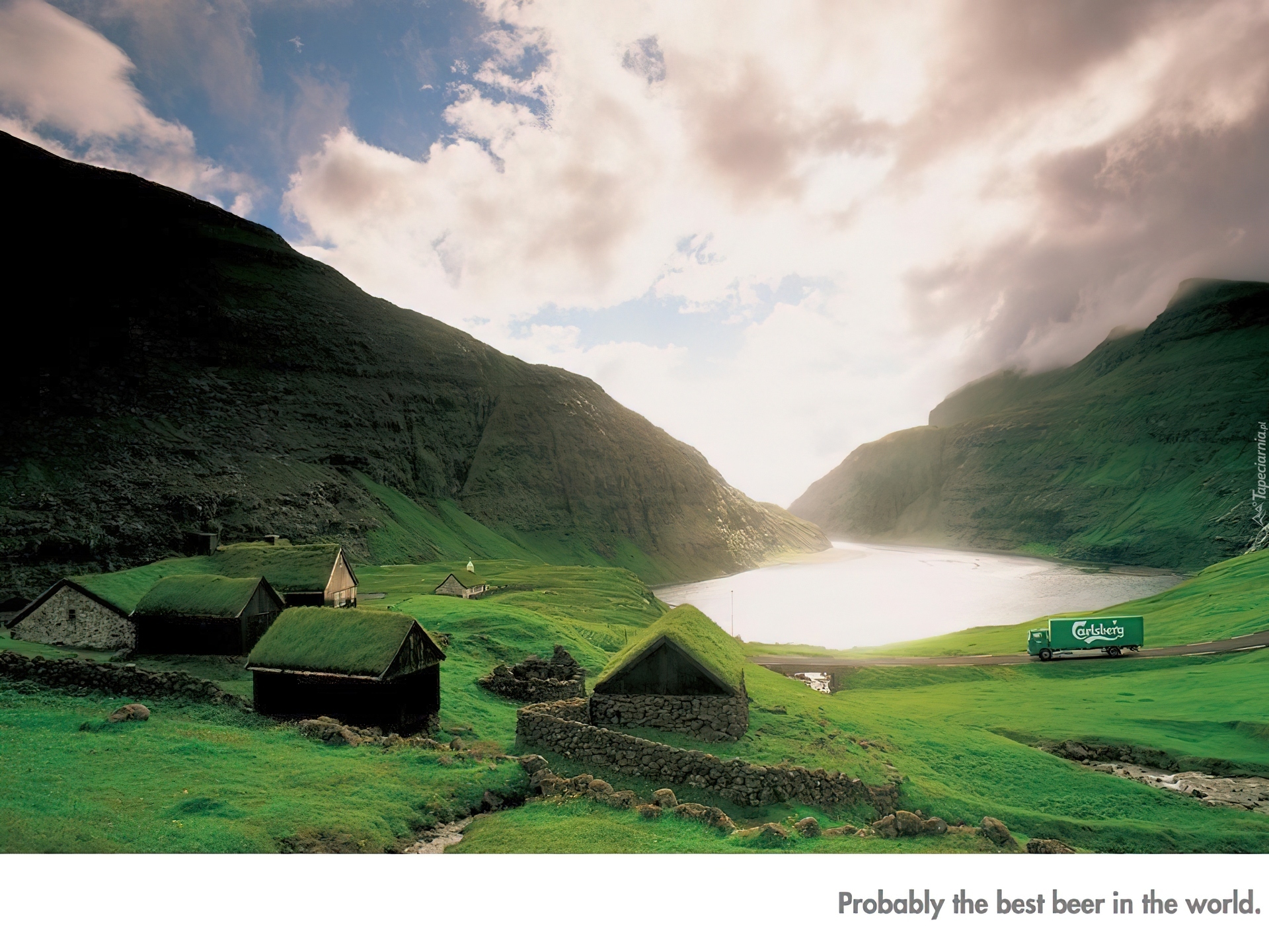 Edytor tapety: Samochód, Dostawczy, Piwa, Calsberg, Góry, Jezioro