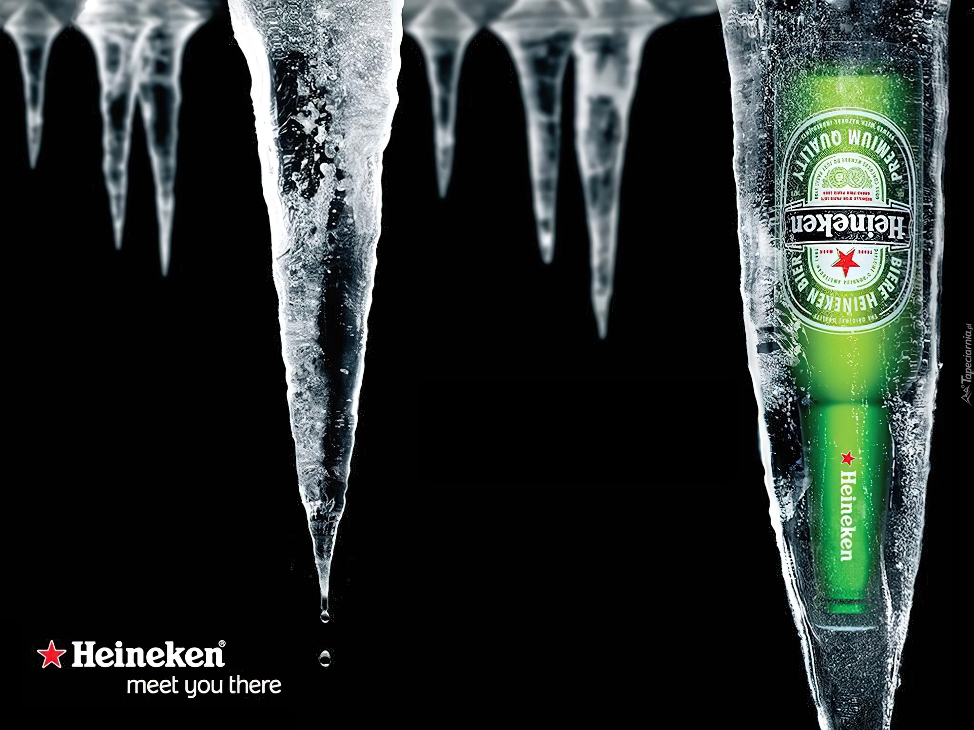 Edytor tapety: Butelka, Heineken, Sople, Lodu