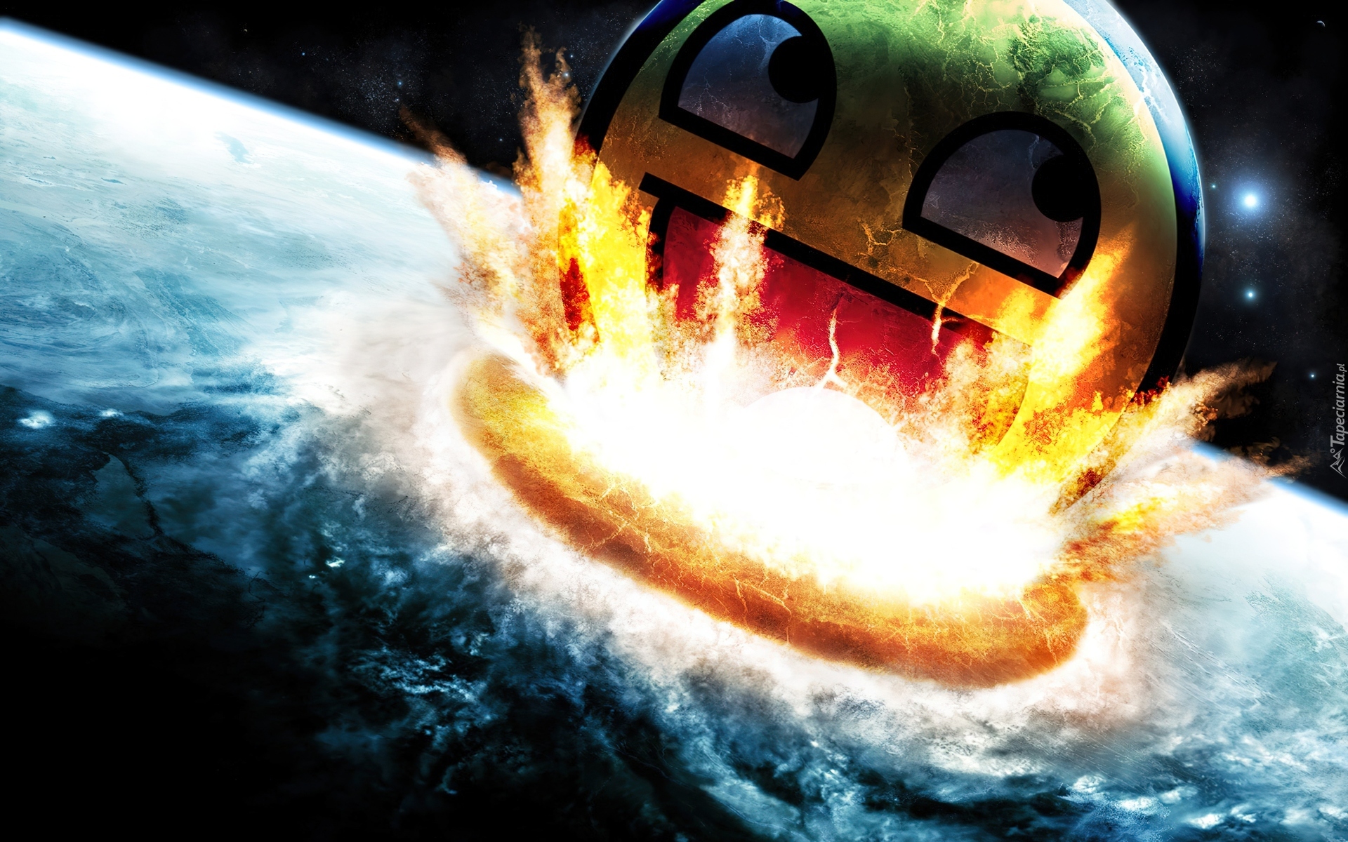 Edytor tapety: Ziemia, Wybuch, Uśmiechnięta, Buźka