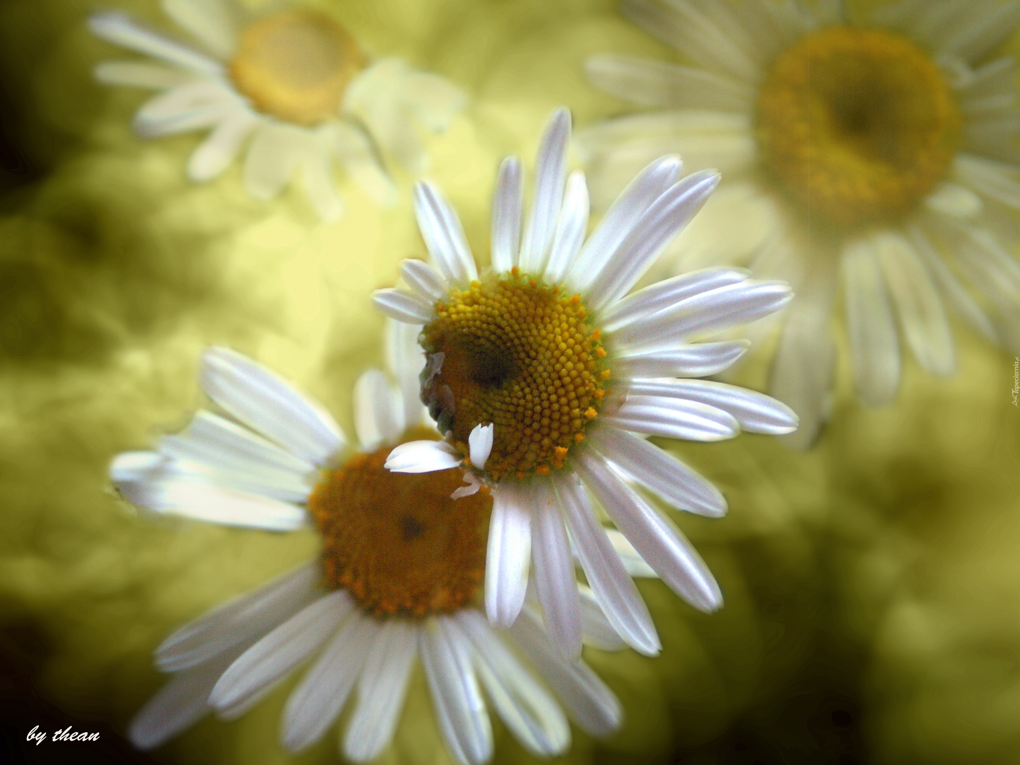 Edytor tapety: Margaretki, Płatki, Rozmyte, Tło