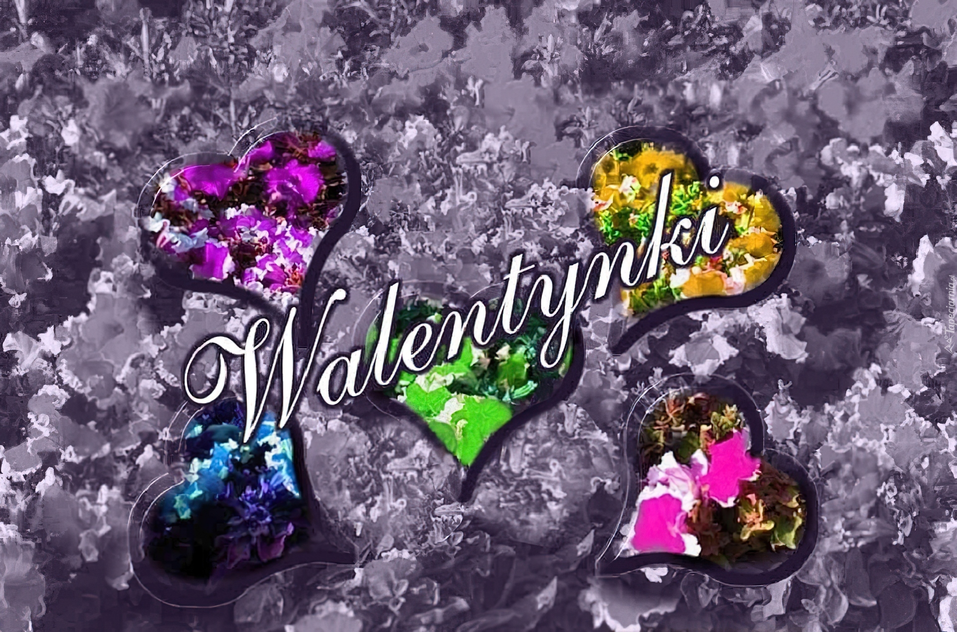 Edytor tapety: Kolorowe, Serduszka, Napis, Walentynki