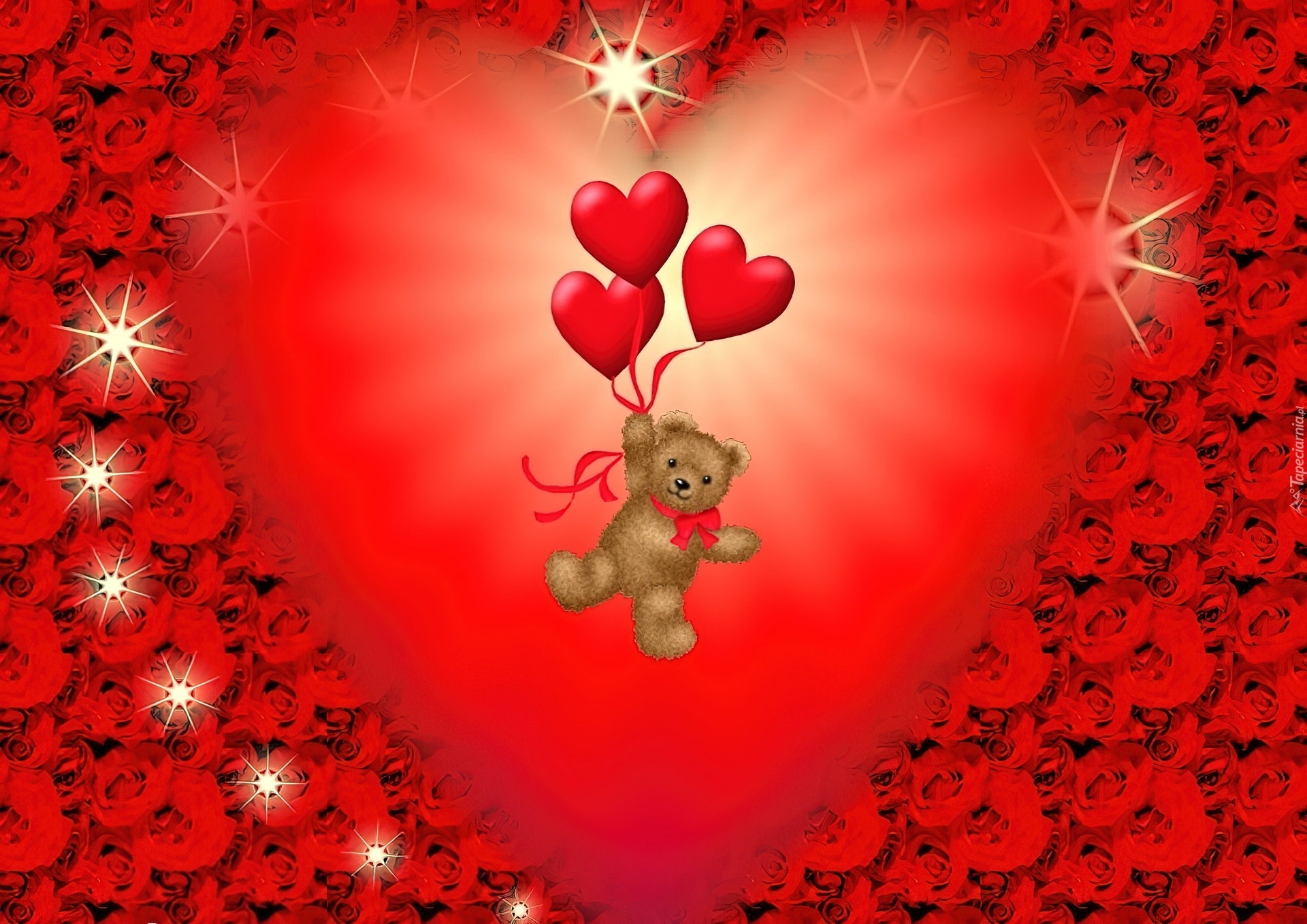 Edytor tapety: Mały, Miś, Trzy, Serduszka, Święto, Zakochanych