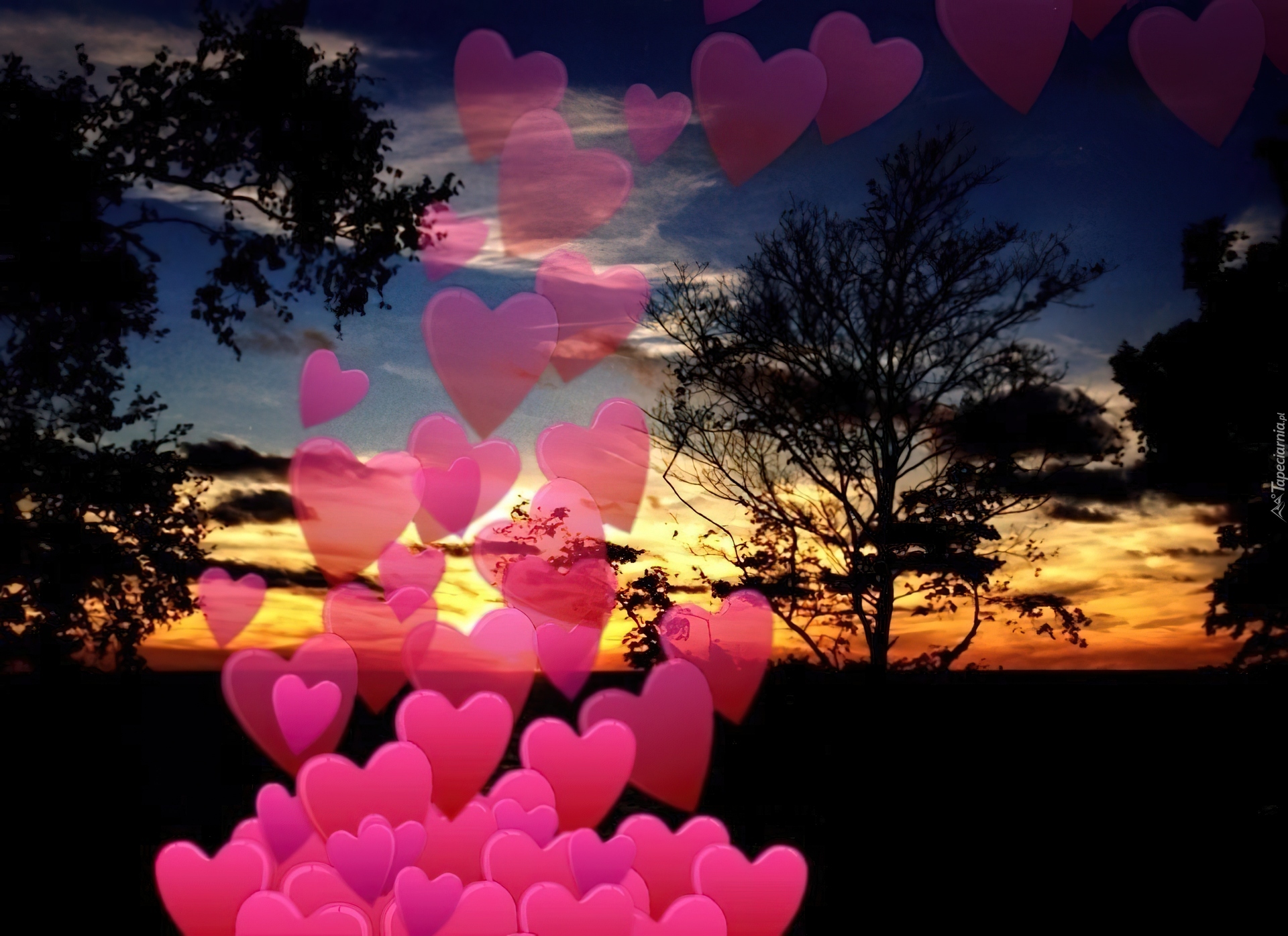 Edytor tapety: Zachód, Słońca, Różowe, Serduszka