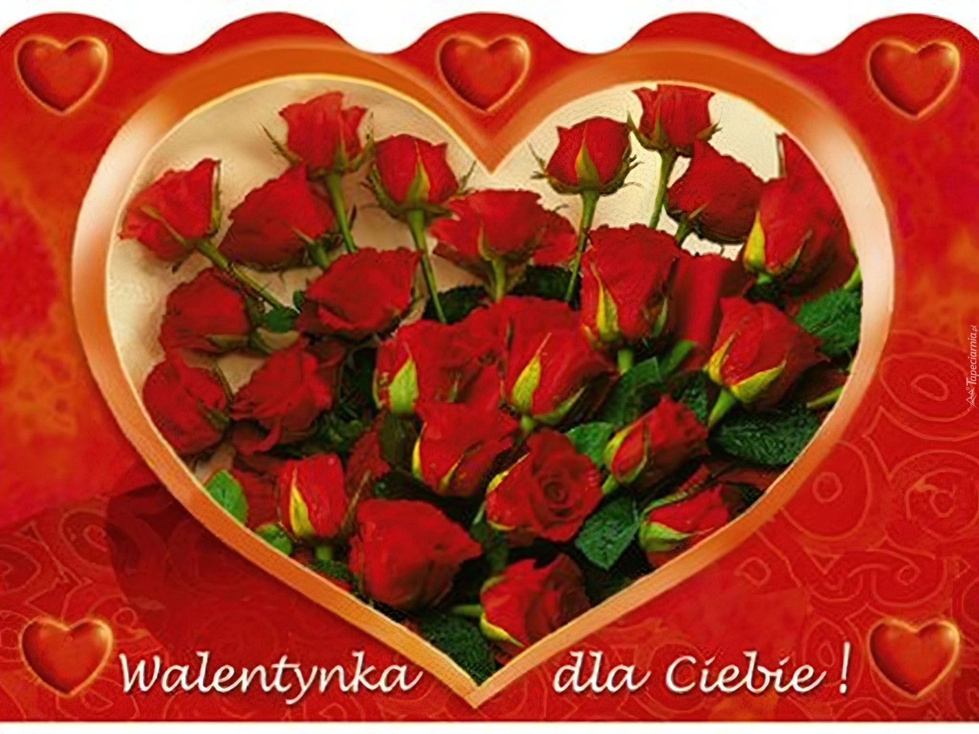 Edytor tapety: Walentynki, Serduszko, Czerwone, Różyczki