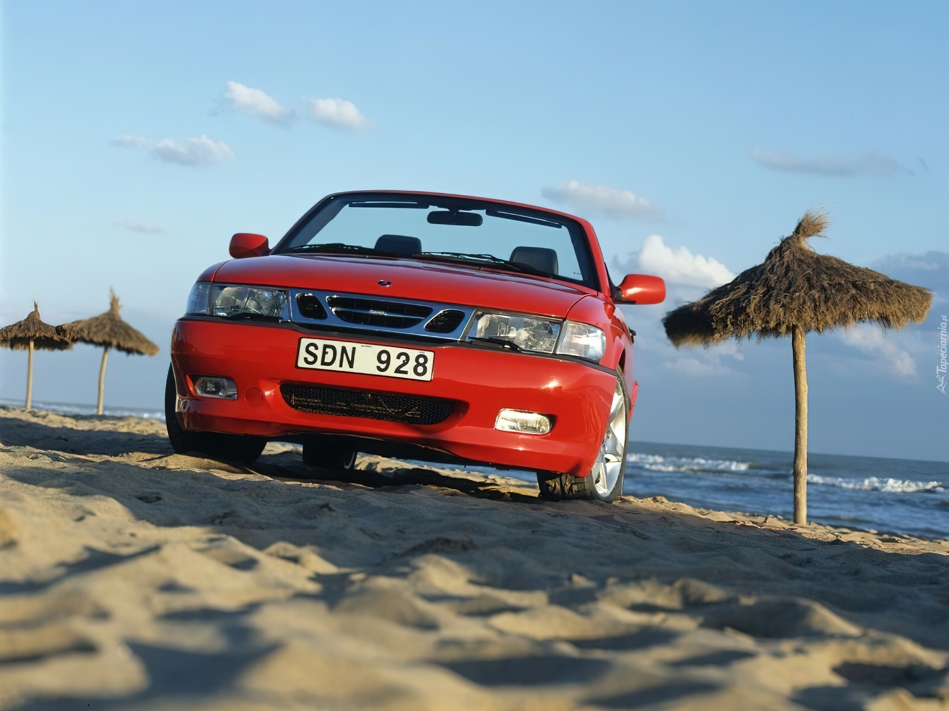 Edytor tapety: Saab 9-3, Czerwony, Cabrio
