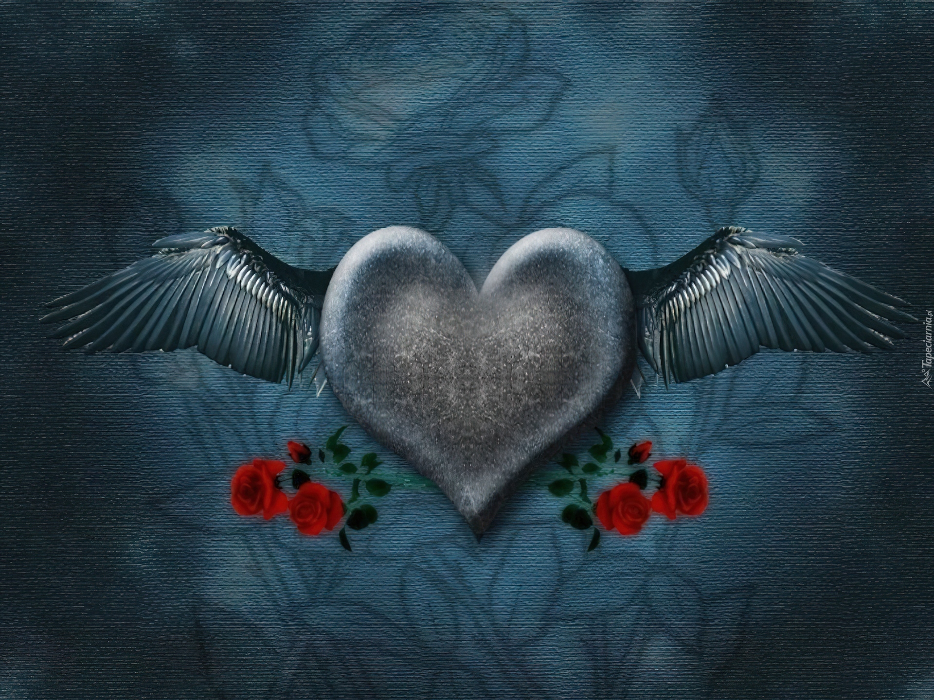 Edytor tapety: Serce, Skrzydełka, Czerwone, Różyczki