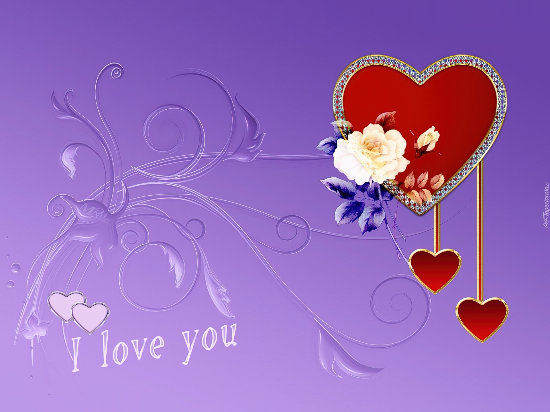 Edytor tapety: Czerwone, Serduszka, Kwiatek, Fioletowe, Tło
