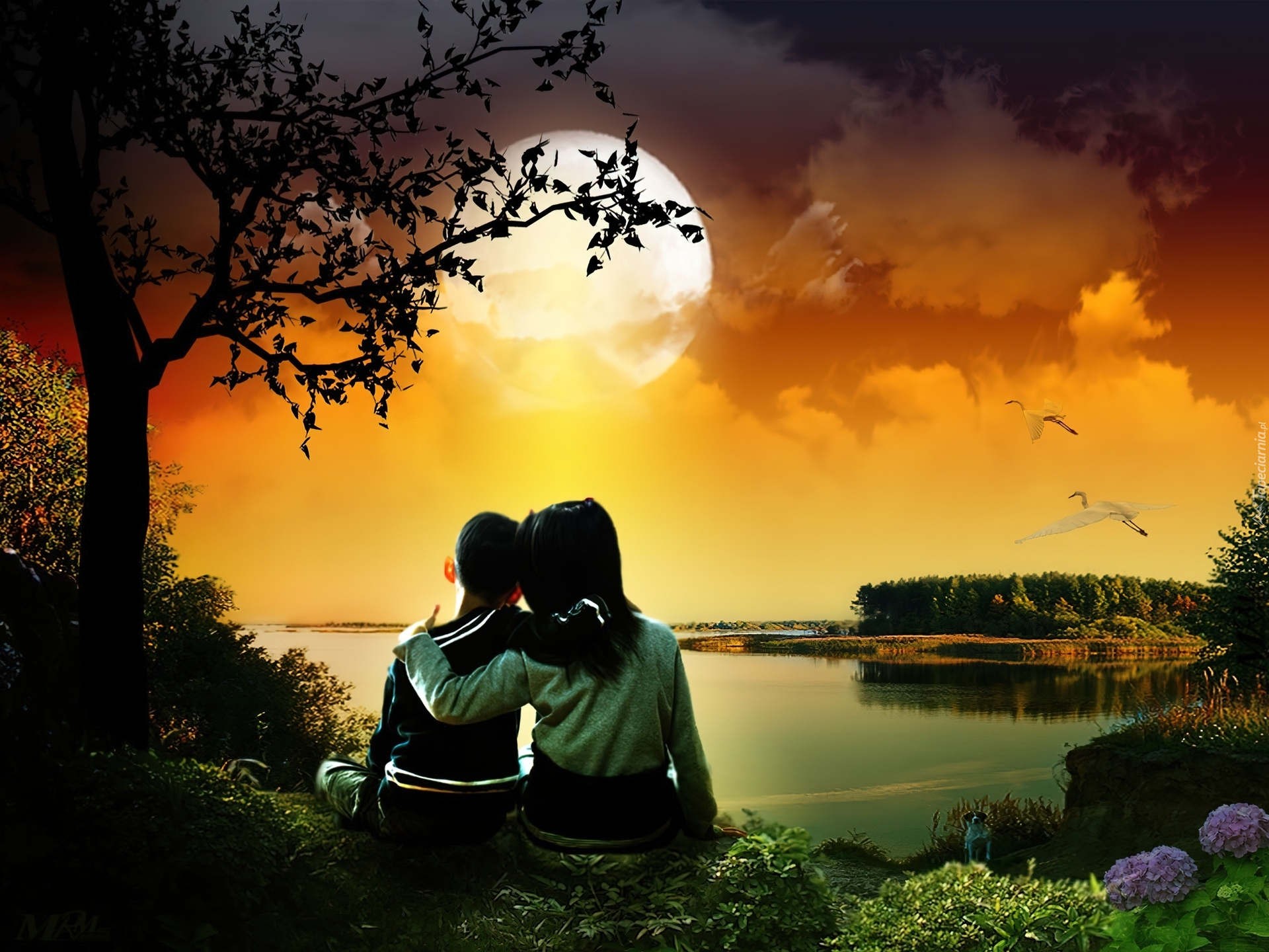 Edytor tapety: Zakochana, Para, Zachód, Słońca