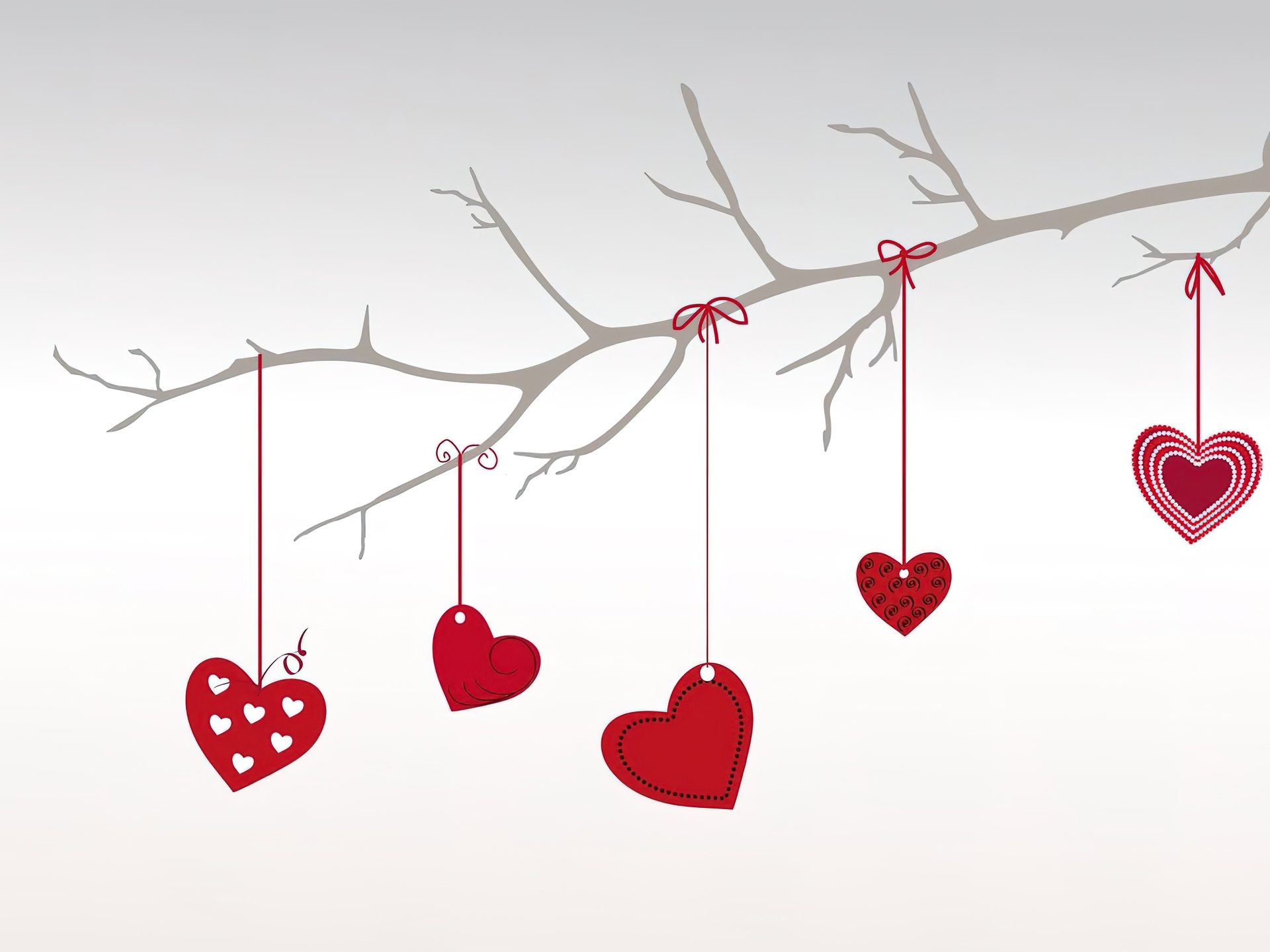 Edytor tapety: Wiszące, Serduszka, Gałąź