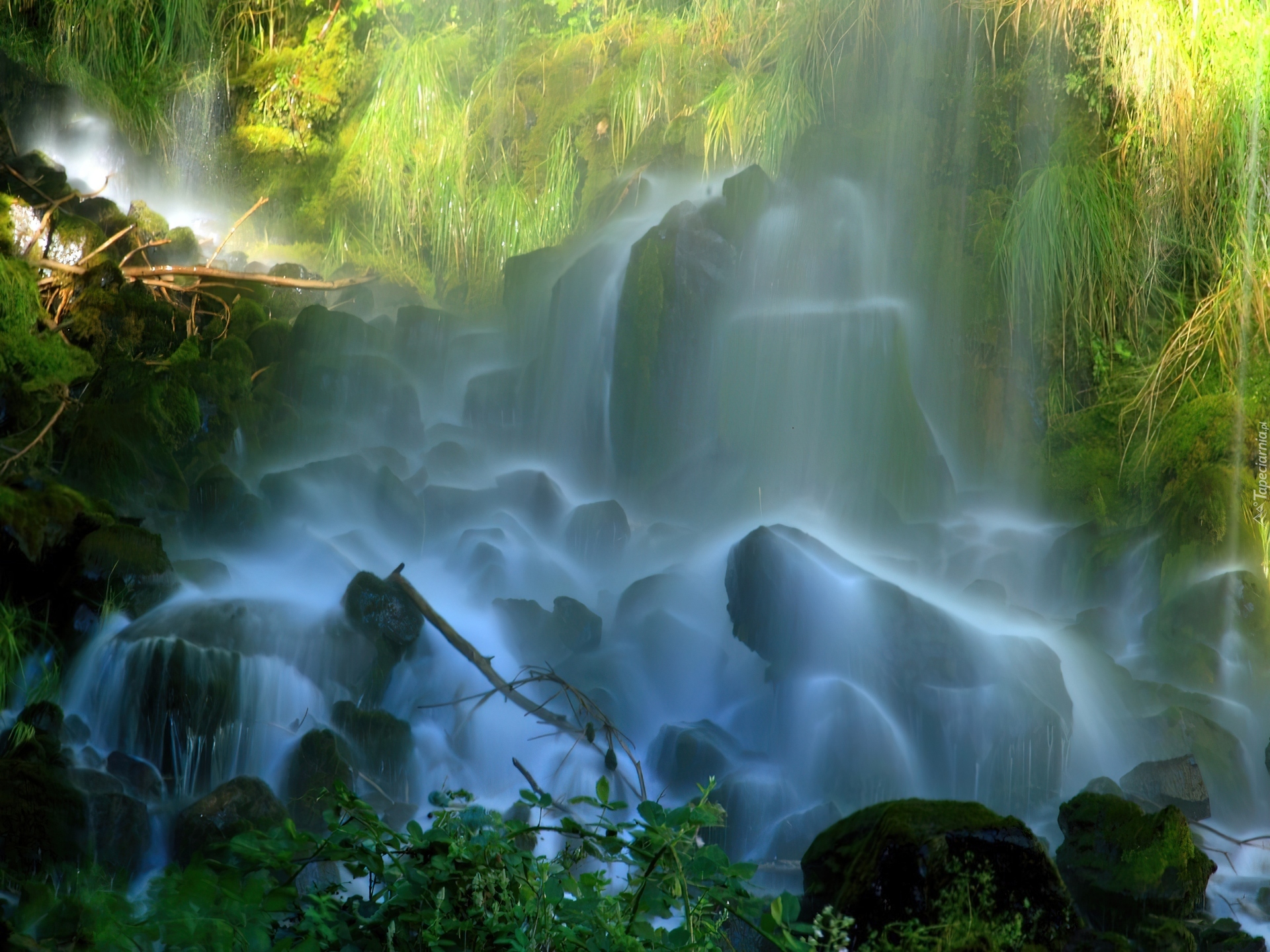 Edytor tapety: Wodospad, Skały, Konary, Drzew
