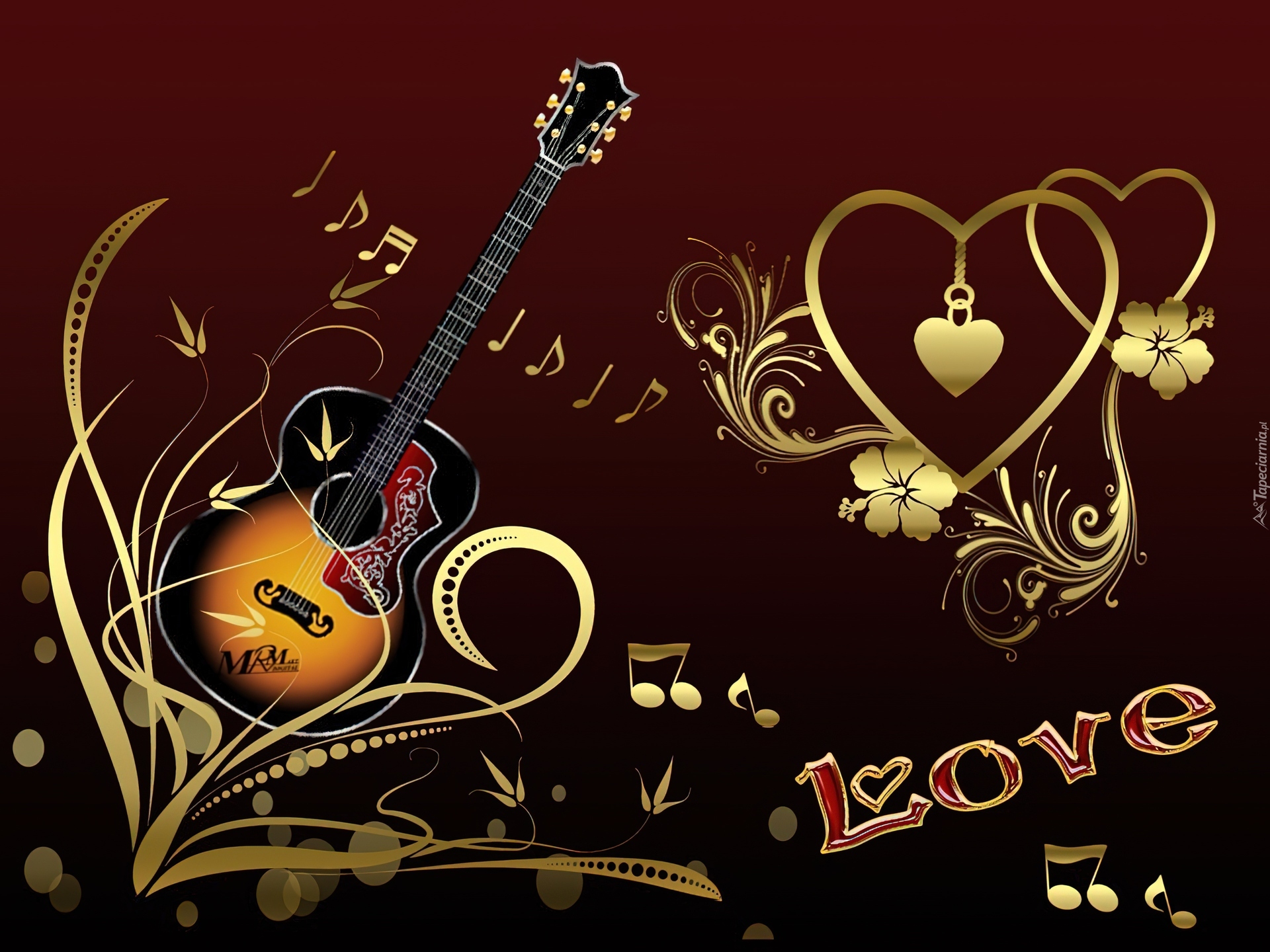 Edytor tapety: Walentynki, Serduszka, Gitara, Muzyka