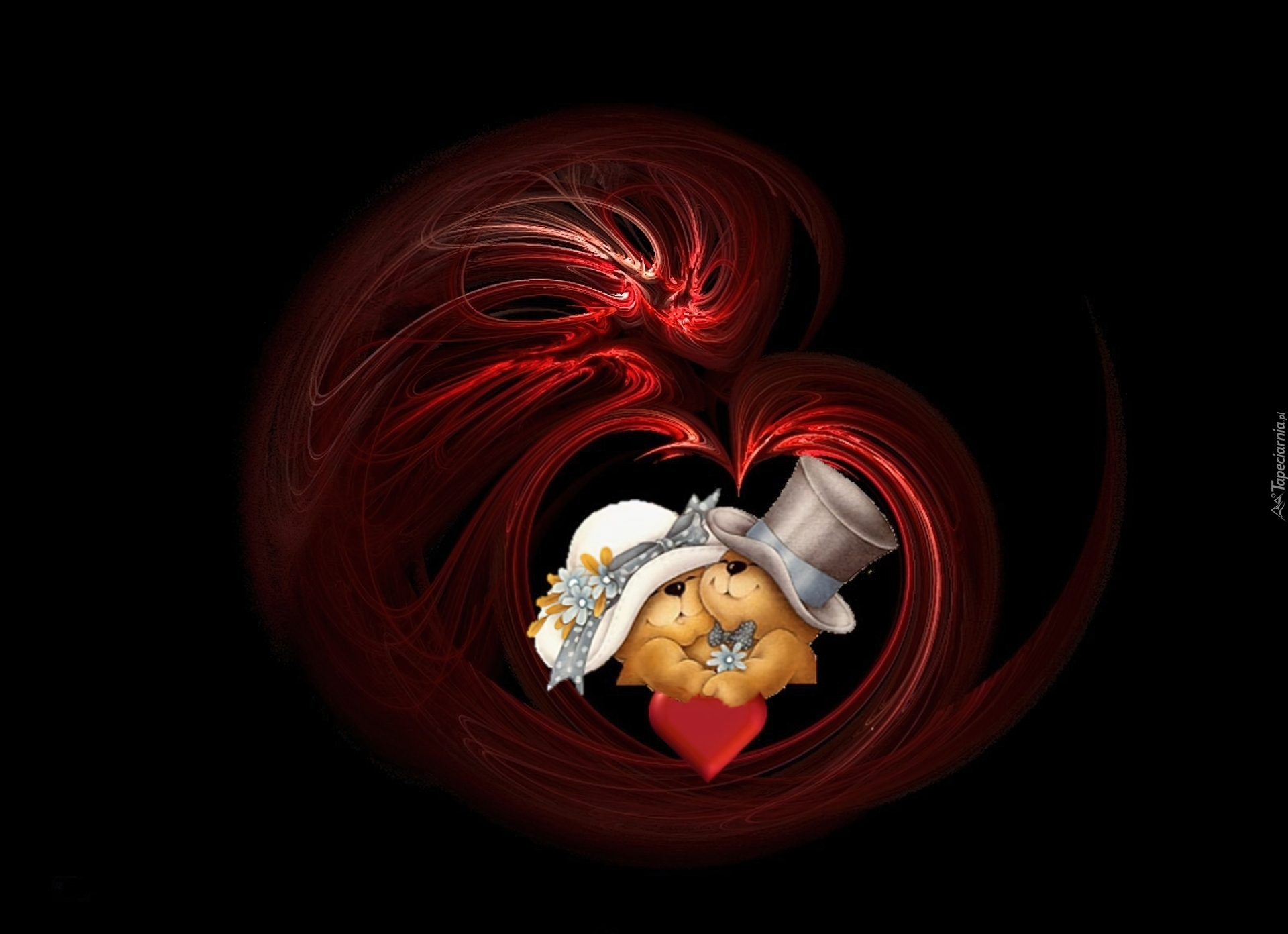 Edytor tapety: Dwa, Misiaczki, Czerwone, Serce