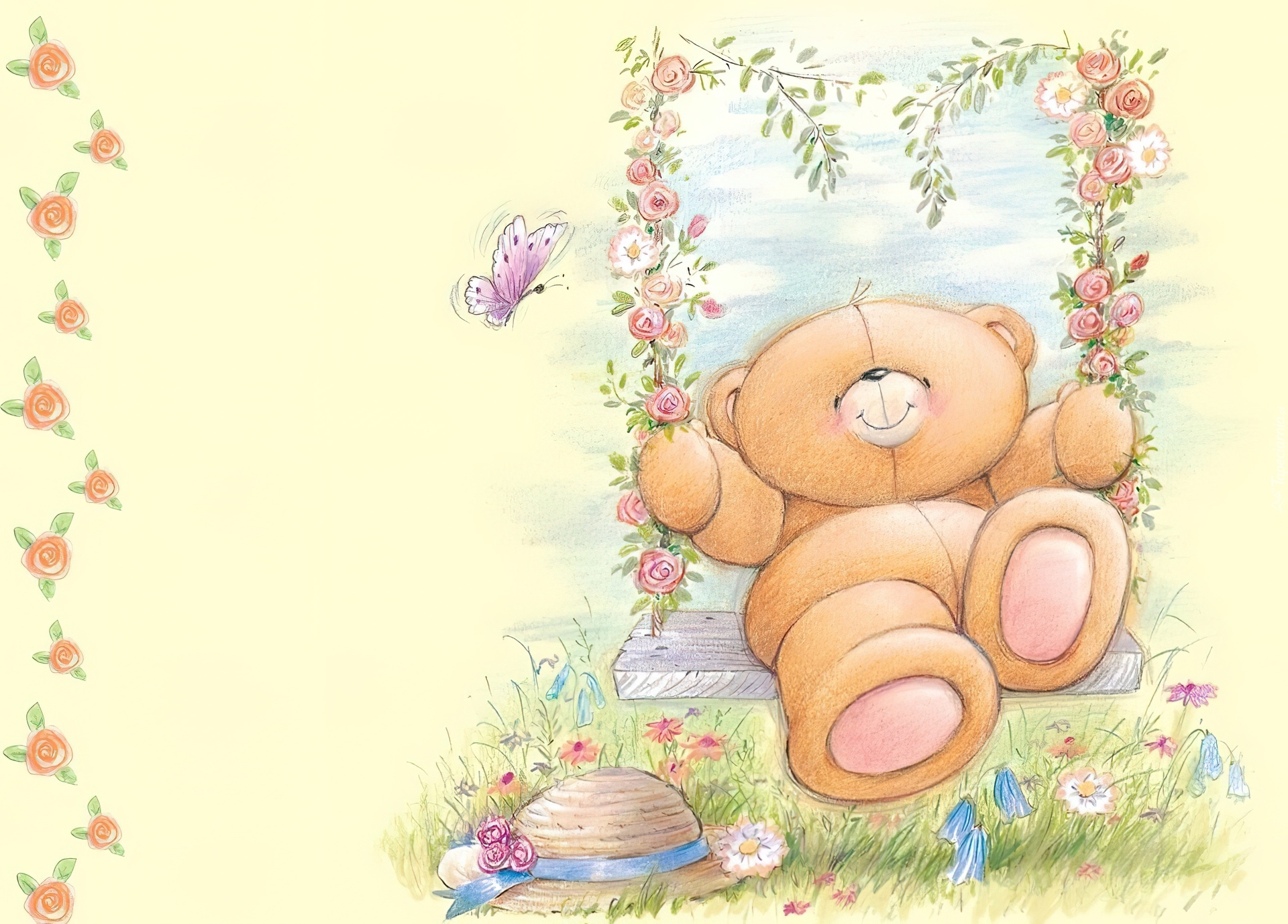 Edytor tapety: Misiek, Huśtawka, Kwiatki