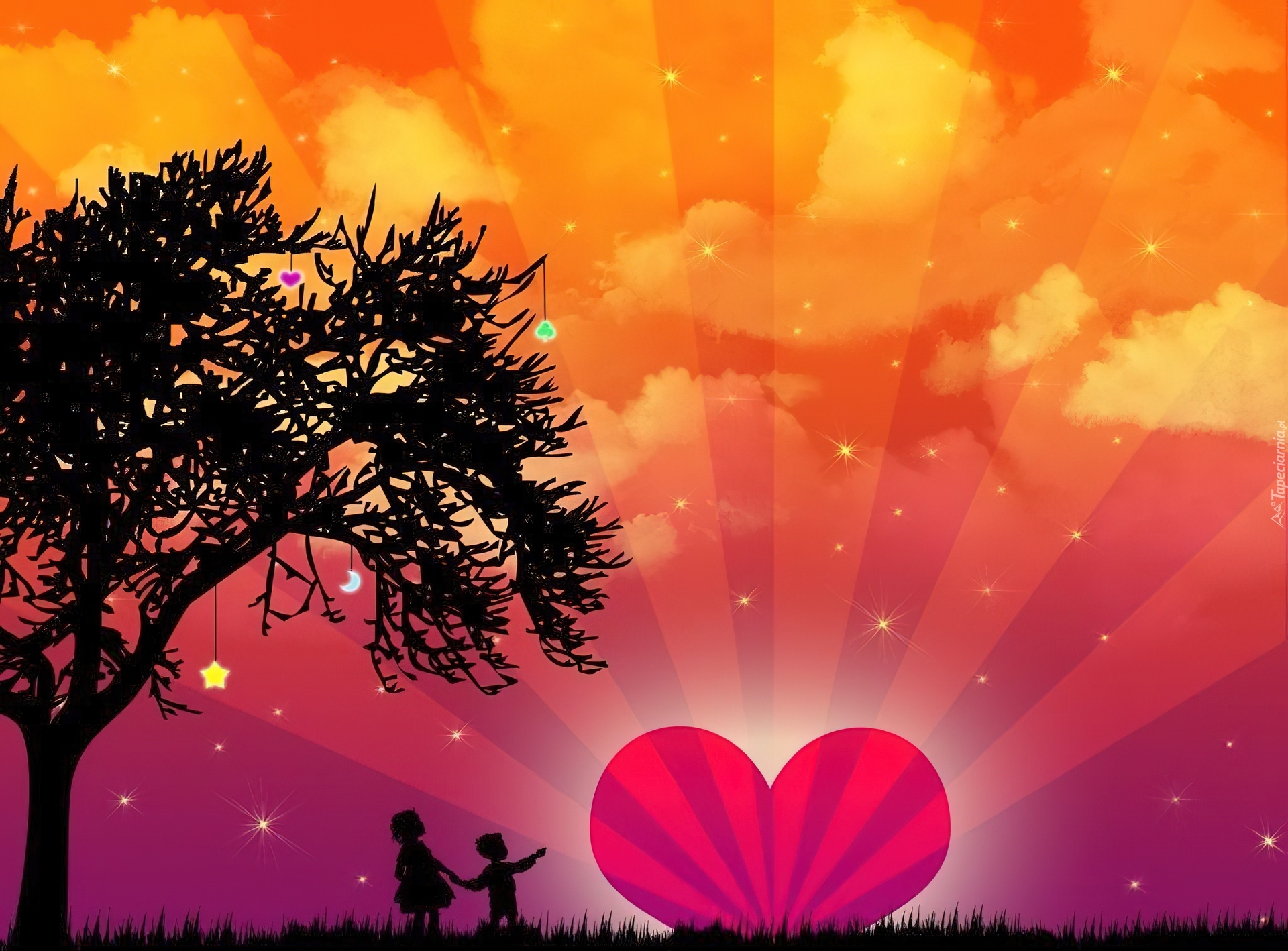 Edytor tapety: Chłopiec, Dziewczynka, Serduszko, Gwiazdy
