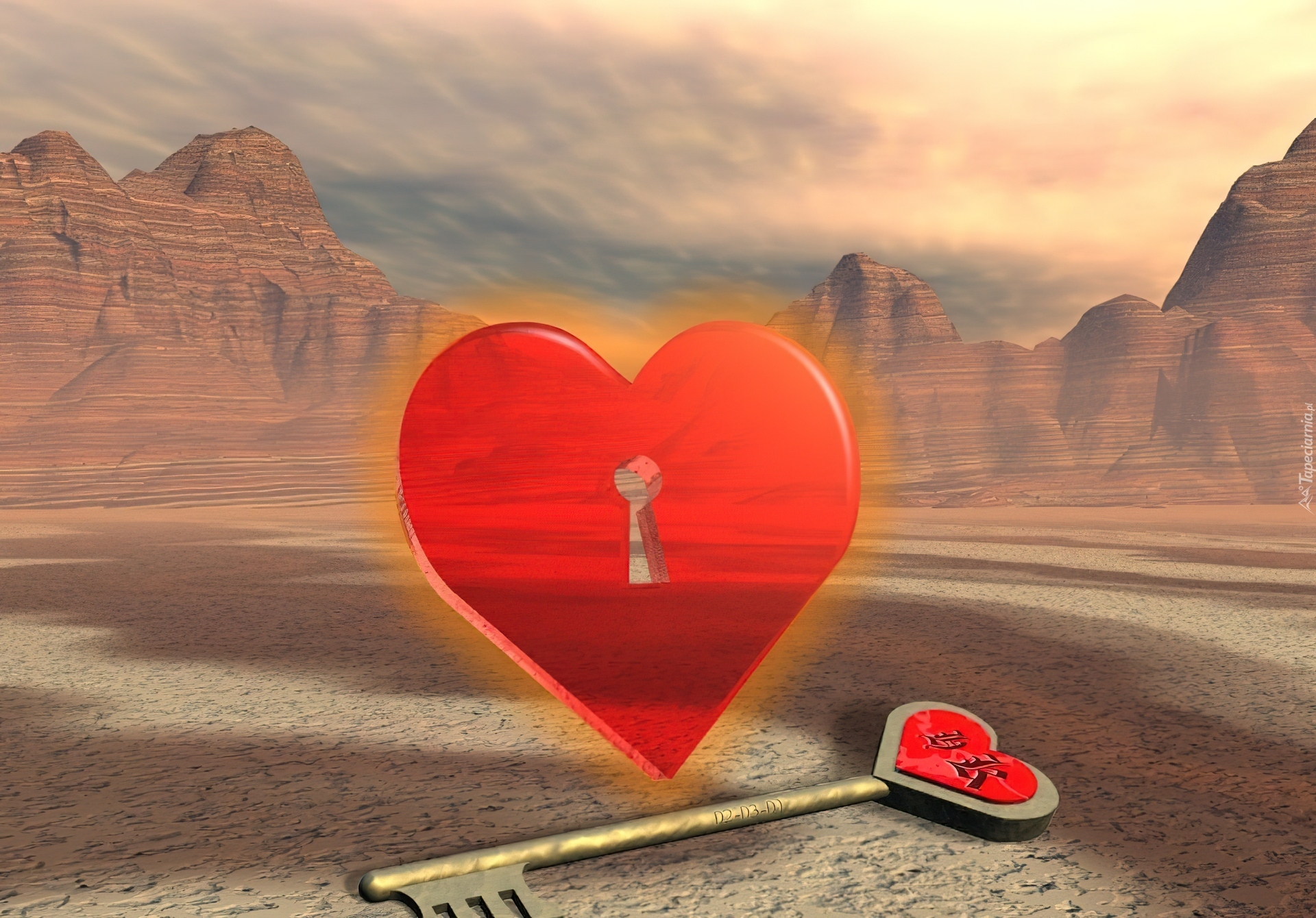 Edytor tapety: Klucz, Do, Serca, Góry