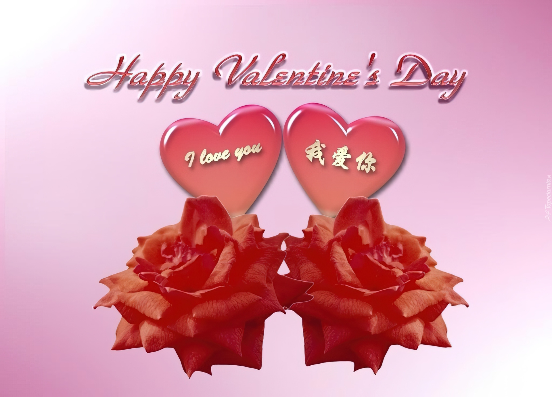 Edytor tapety: Dwa, Serca, Dwie, Róże, Walentynki