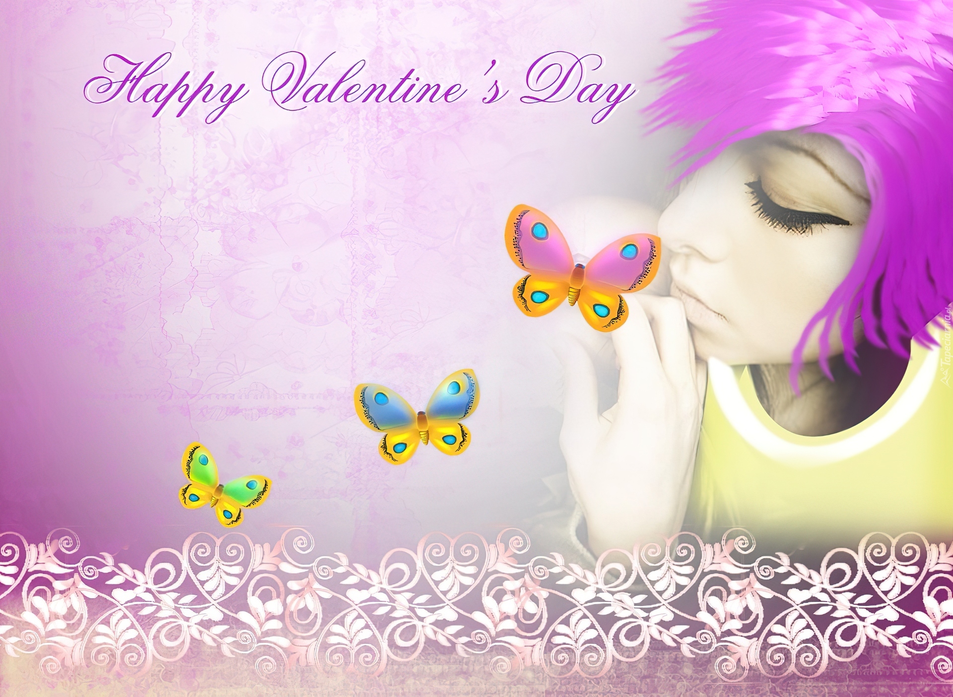 Edytor tapety: Zakochana, Dziewczyna, Motylki