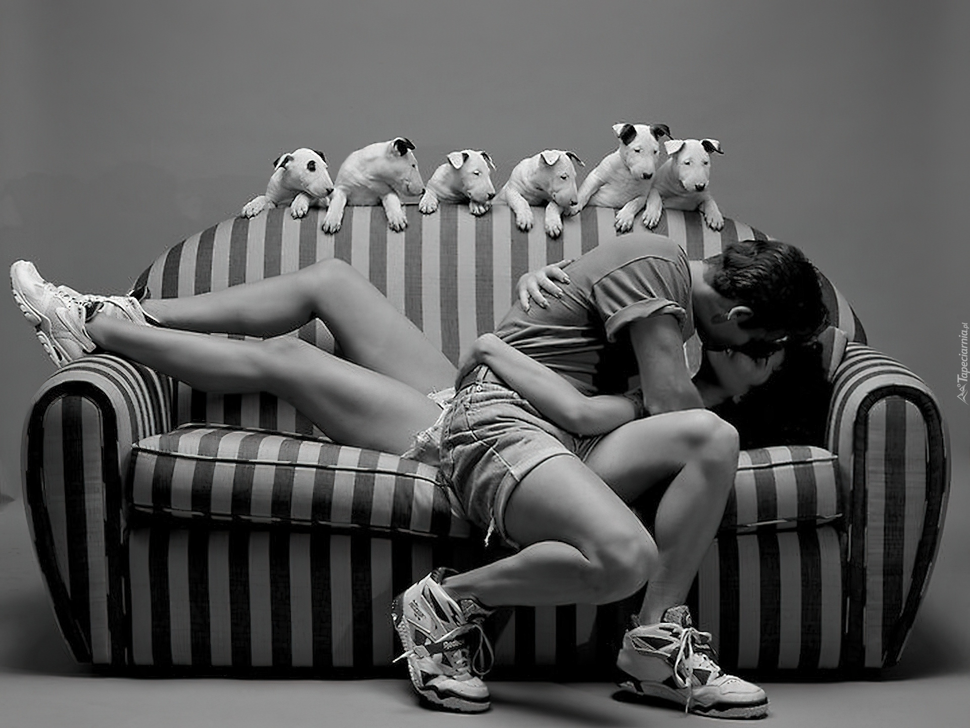 Edytor tapety: Zakochani, Psy, Sofa