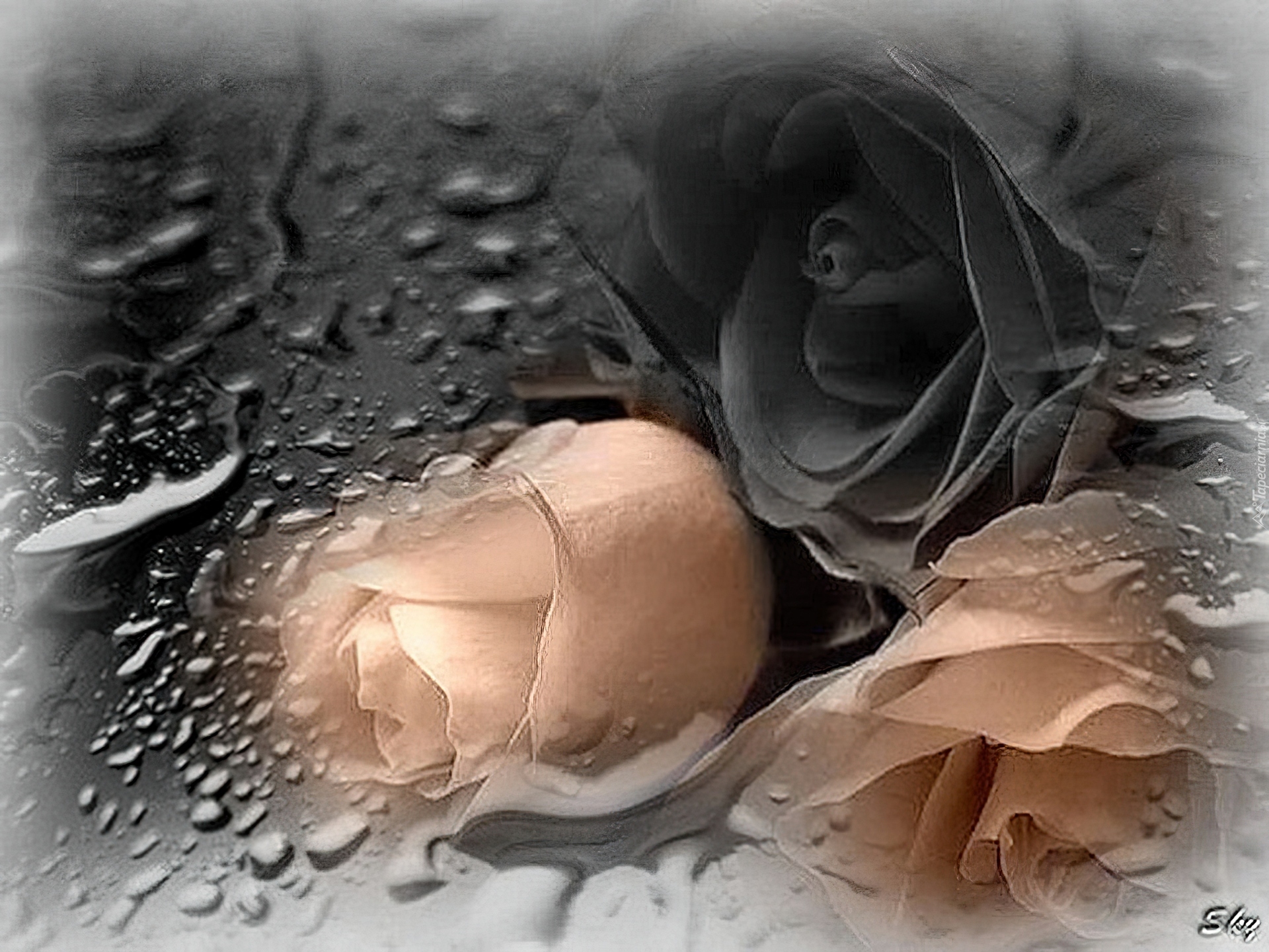 Edytor tapety: Róże, Krople, Wody