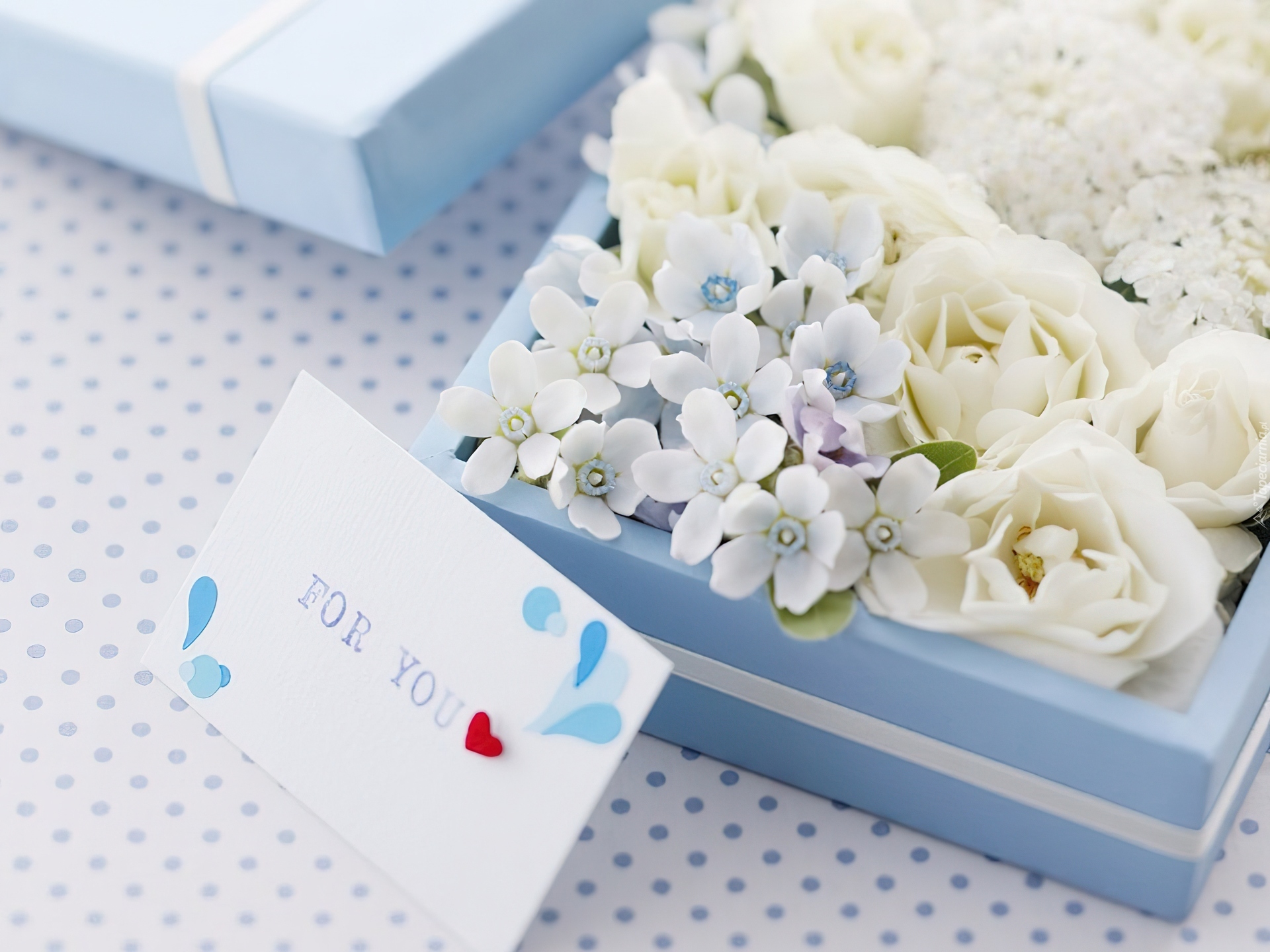 Edytor tapety: Pudełko, Kwiaty, Kartka