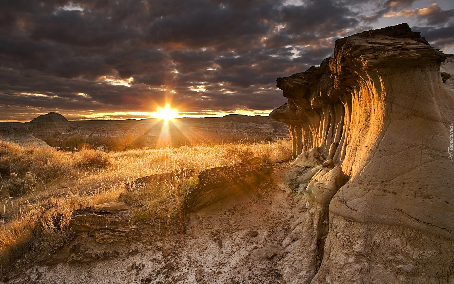 Edytor tapety: Pustynia, Skały, Zachód, Słońca