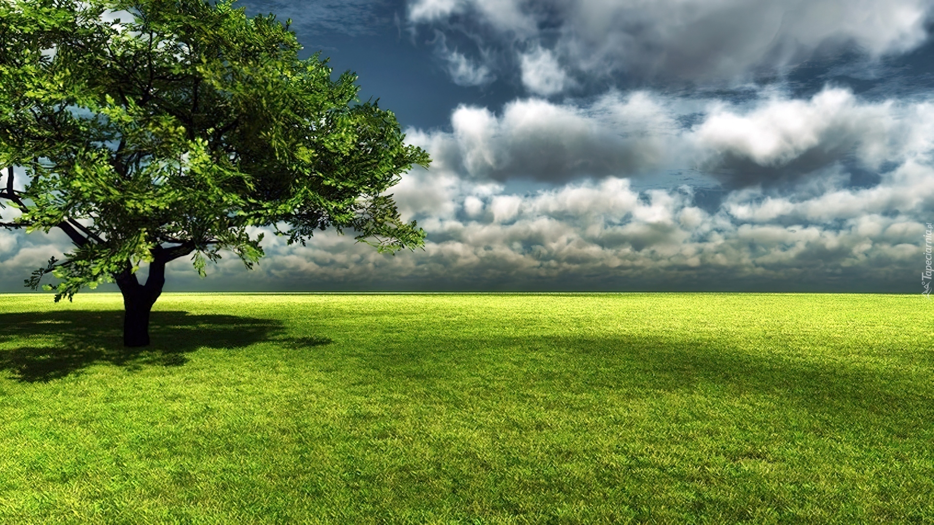 Edytor tapety: Drzewo, Polana, Chmury
