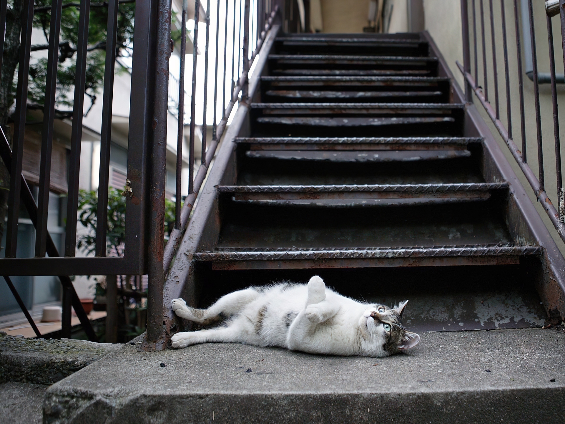Edytor tapety: Kot, Schody, Odpoczynek