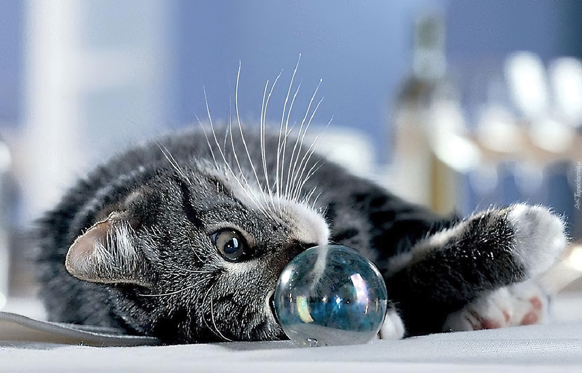 Edytor tapety: Szary, Kotek, Zabawa, Przezroczysta, Piłeczka