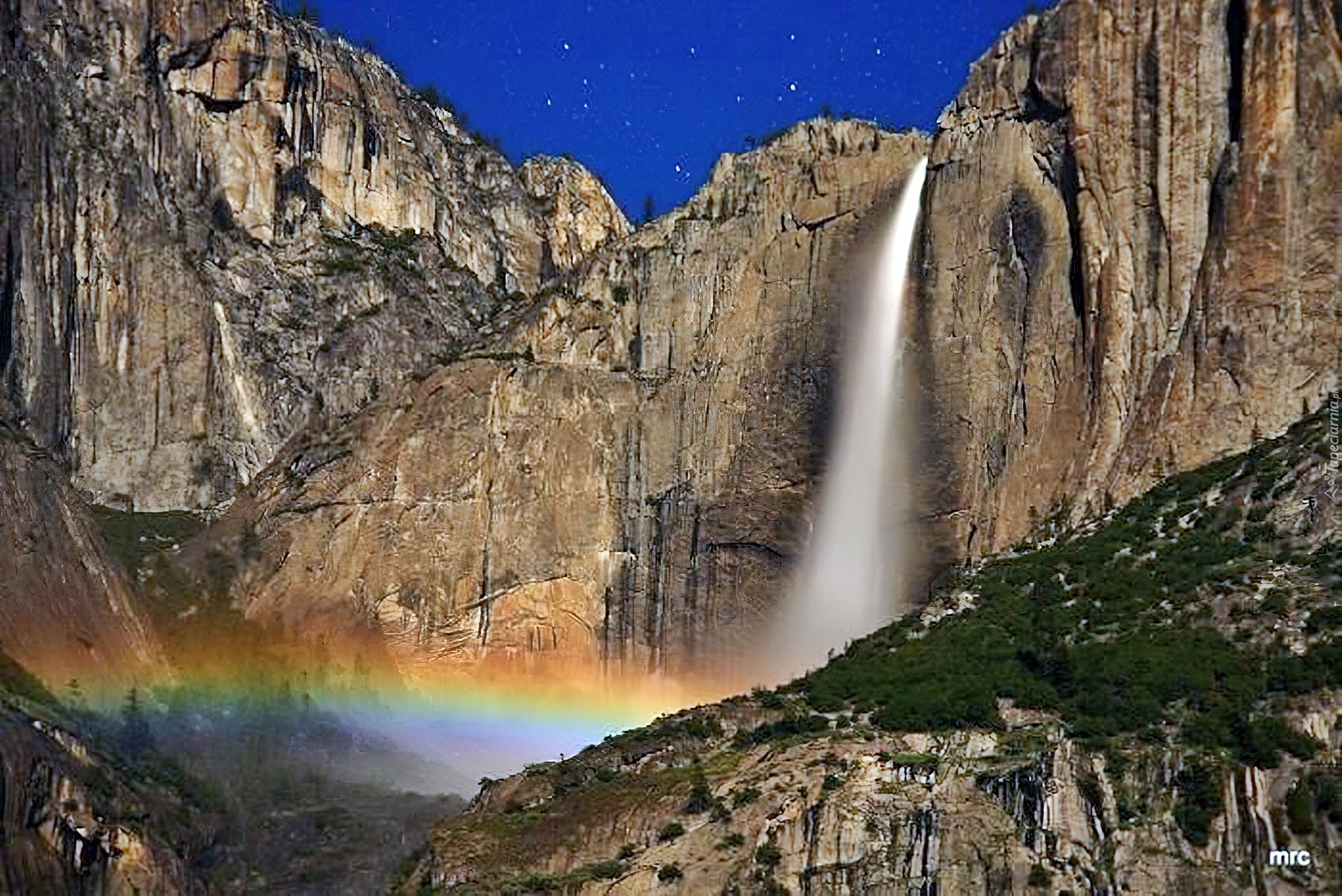 Edytor tapety: Góry, Wodospad, Tęcza
