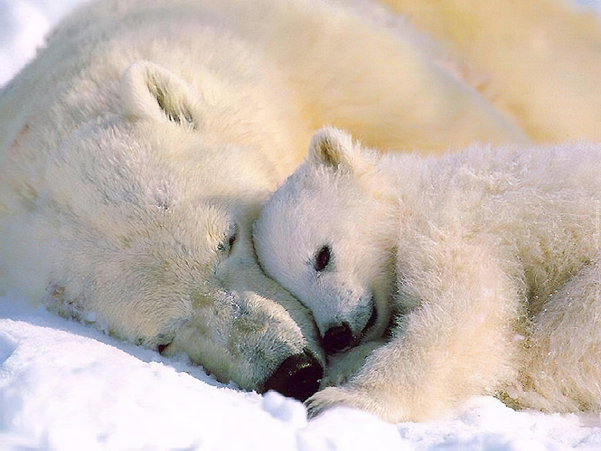 Edytor tapety: Biała, Niedźwiedzica, Młody, Niedźwiadek