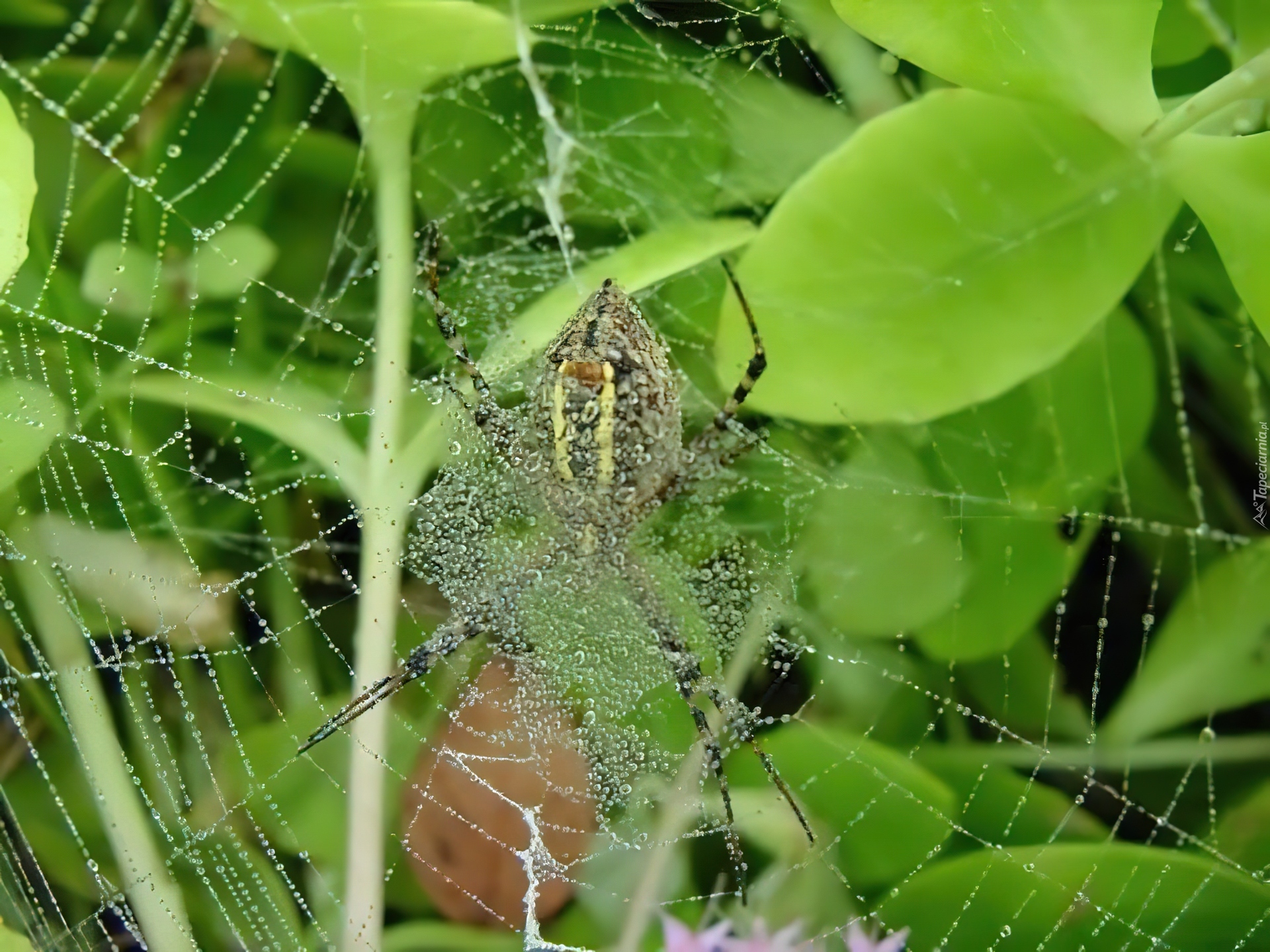 Edytor tapety: Sieć, Pająka, Zielone, Liście
