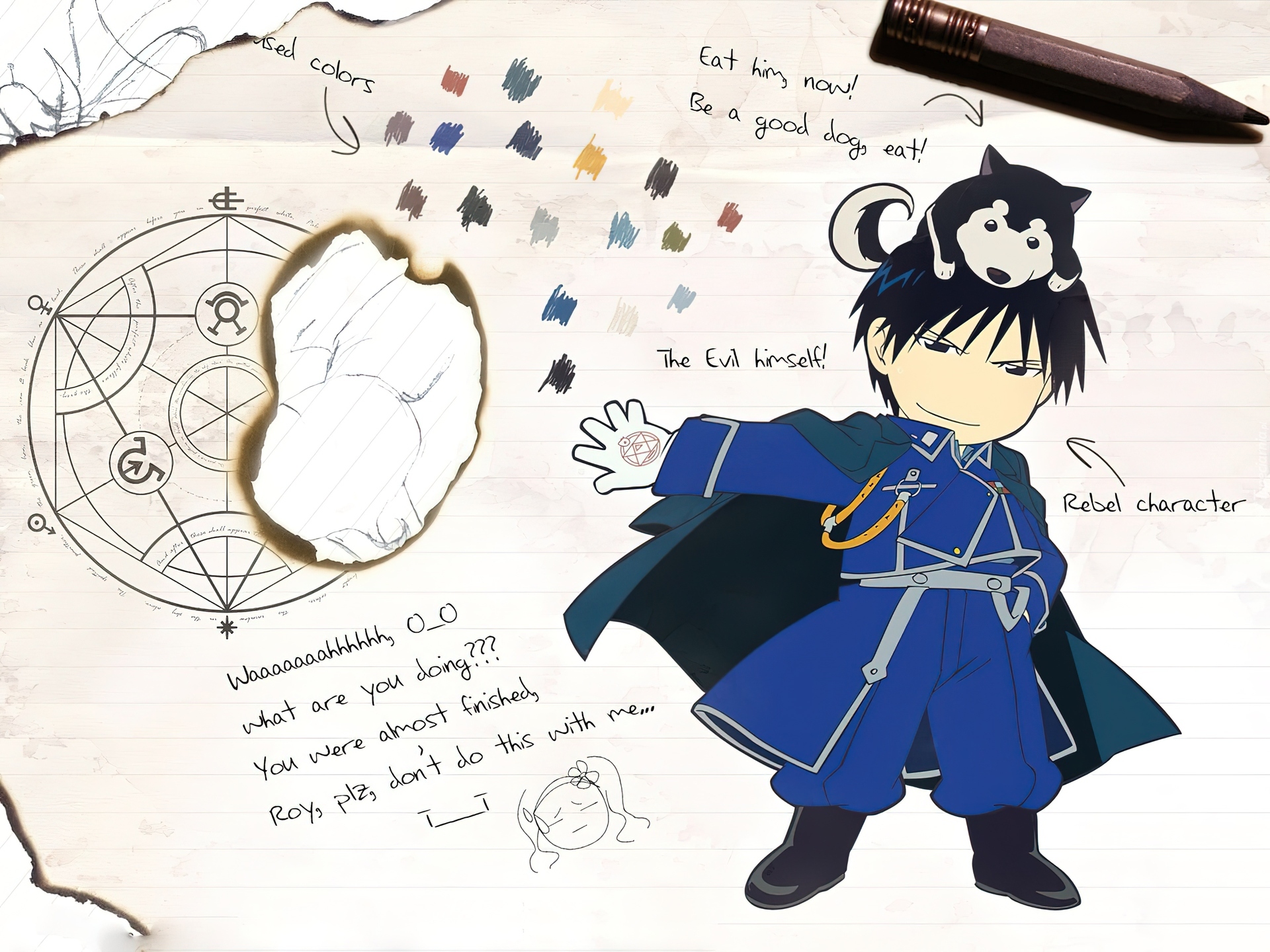 Edytor tapety: Roy Mustang, Haski, Ołówek