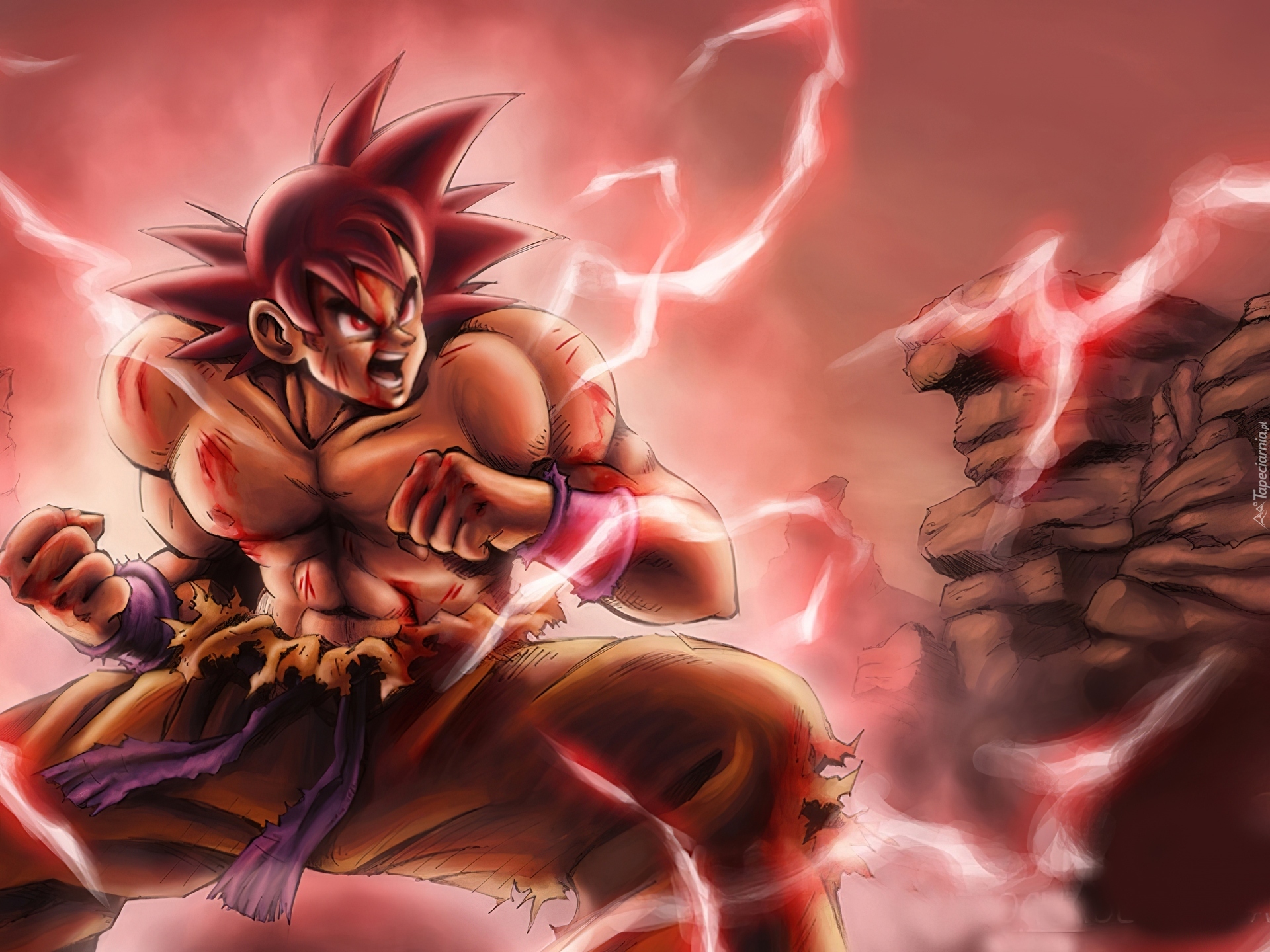 Edytor tapety: Songoku, Pioruny, Skała