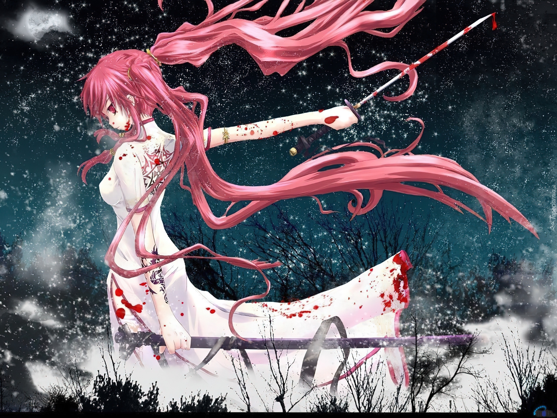 Edytor tapety: Dziewczyna, Miecz, Krew