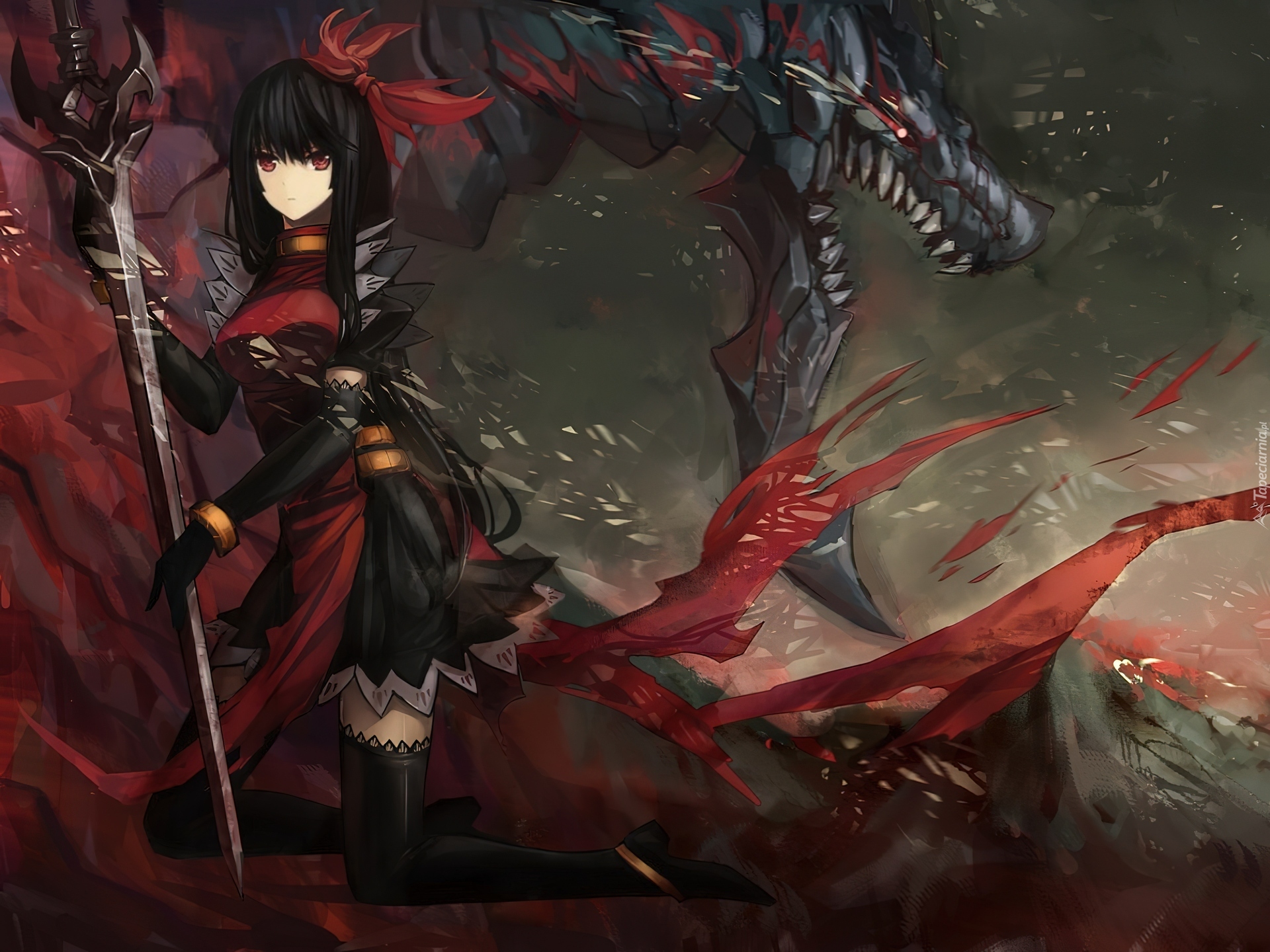 Edytor tapety: Dziewczyna, Miecz, Smok