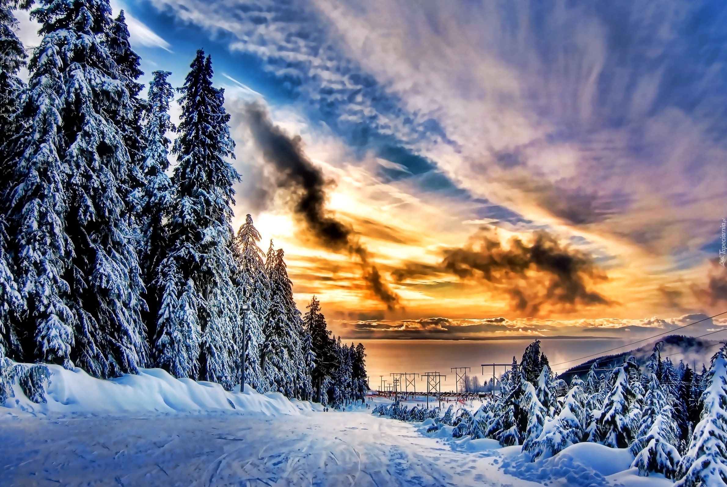 Edytor tapety: Niebo, Chmury, Śnieg, Linie, Energetyczne
