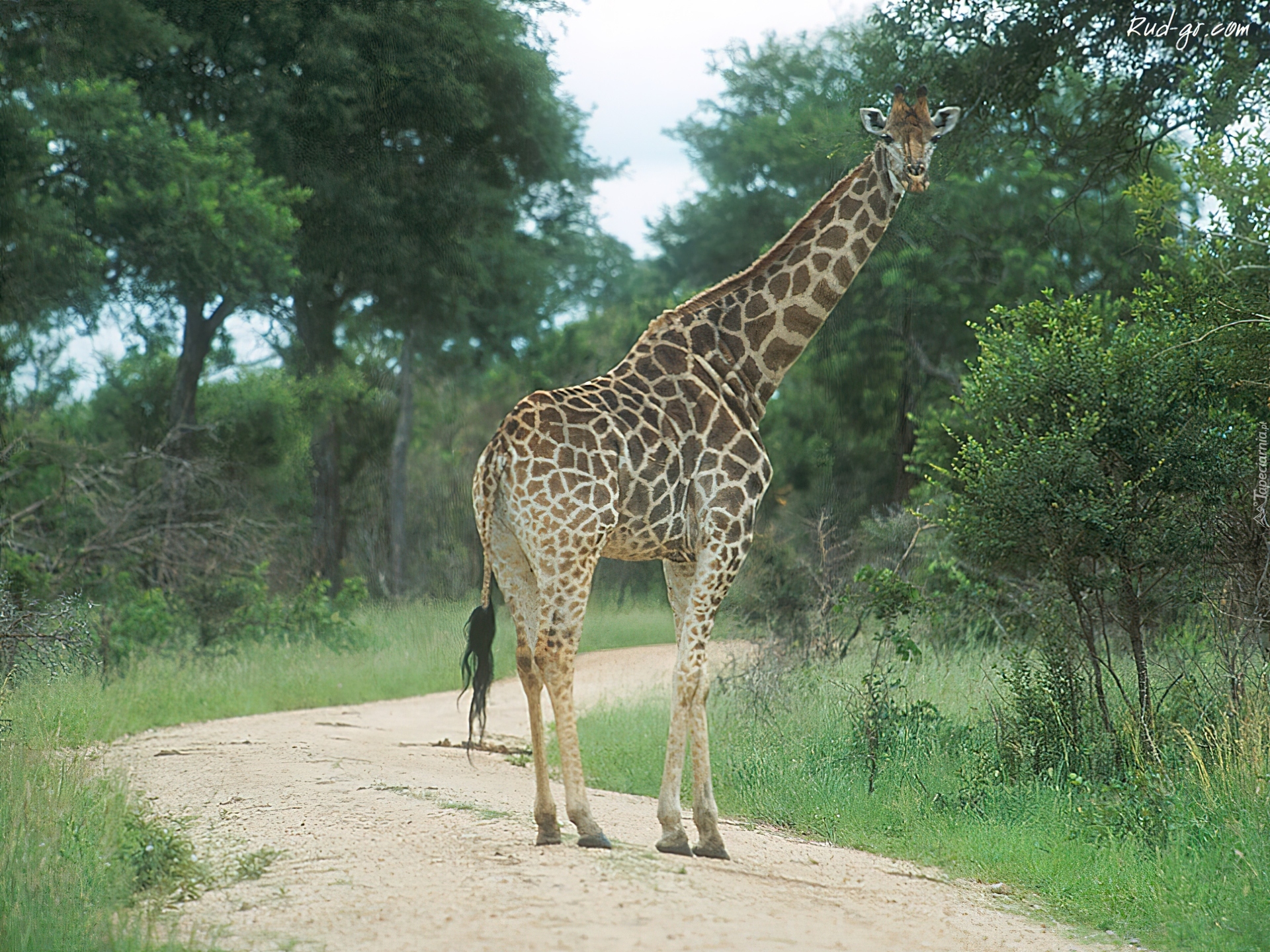 Edytor tapety: Żyrafa, Ścieżka, Drzewa