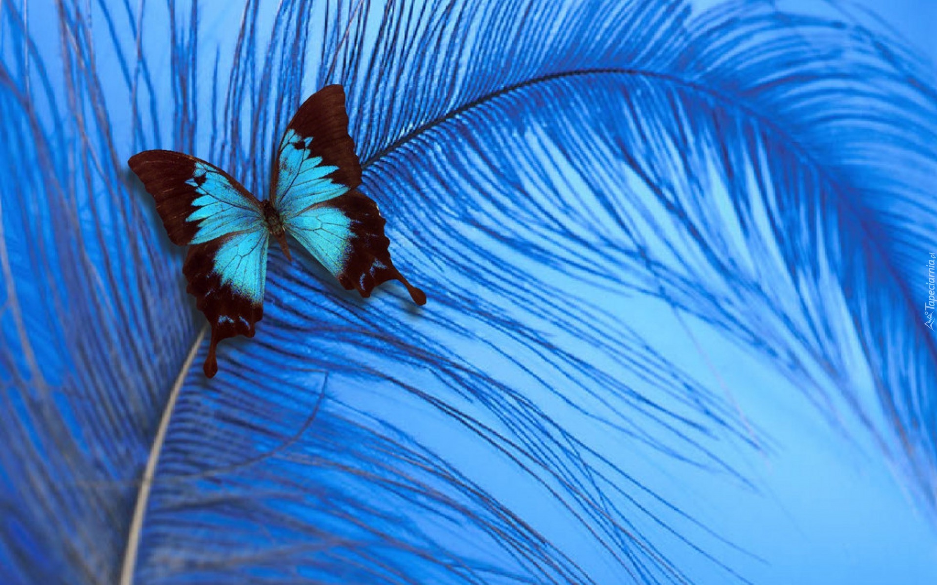Edytor tapety: Kolorowy, Motyl, Niebieskie, Pióro