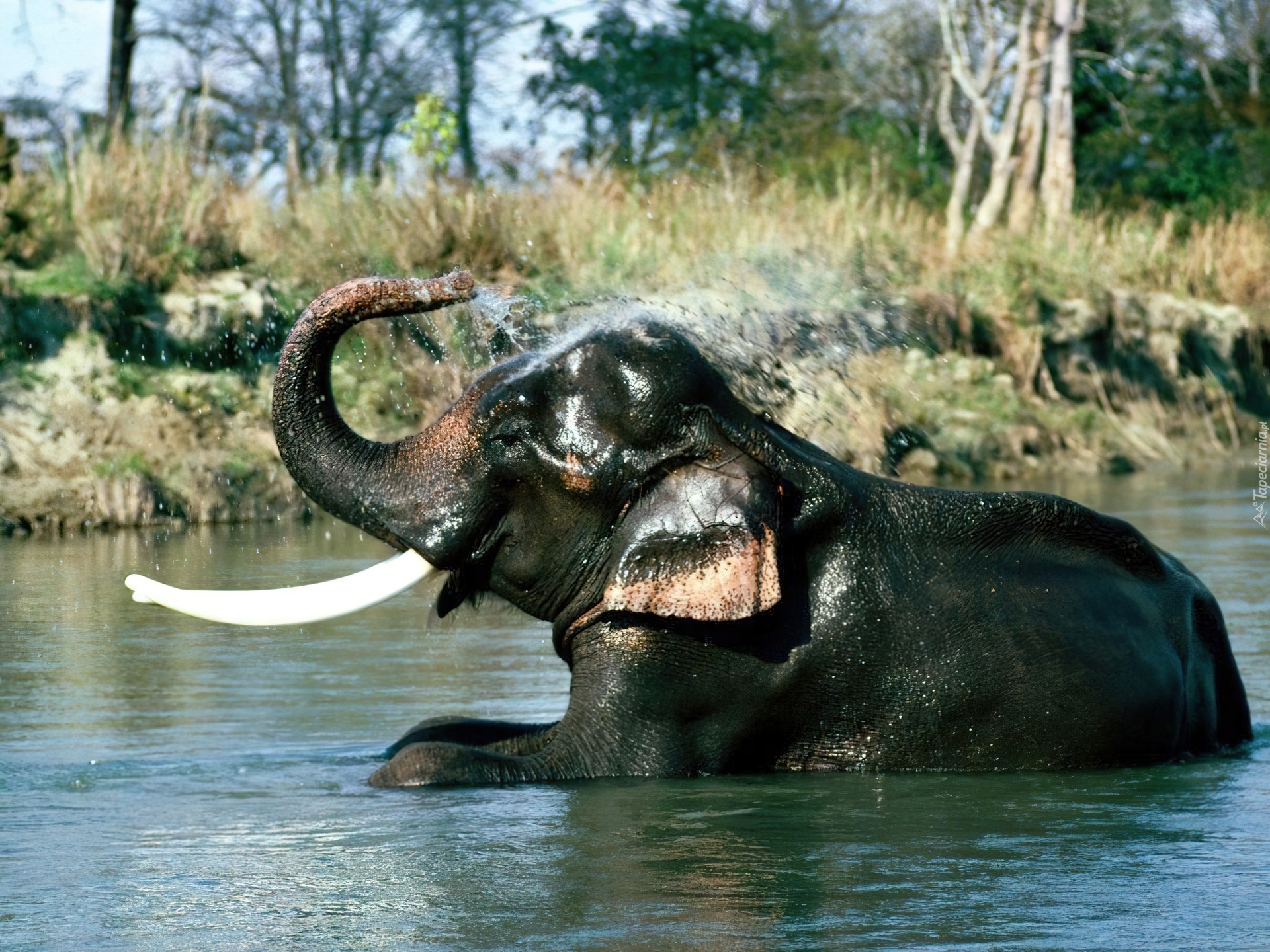 Edytor tapety: Słoń, Kąpiel, Trąba