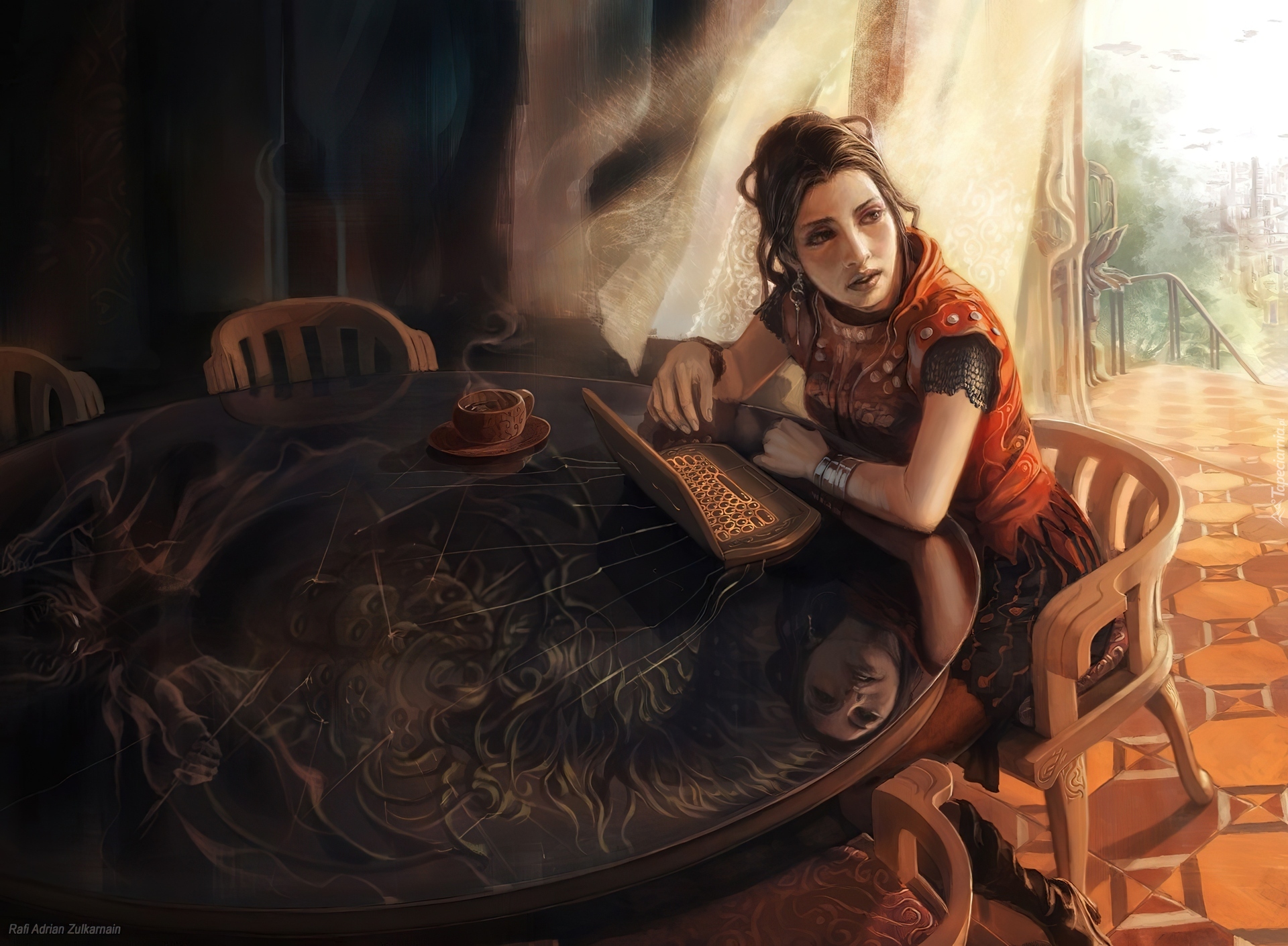 Edytor tapety: Kobieta, Notebook