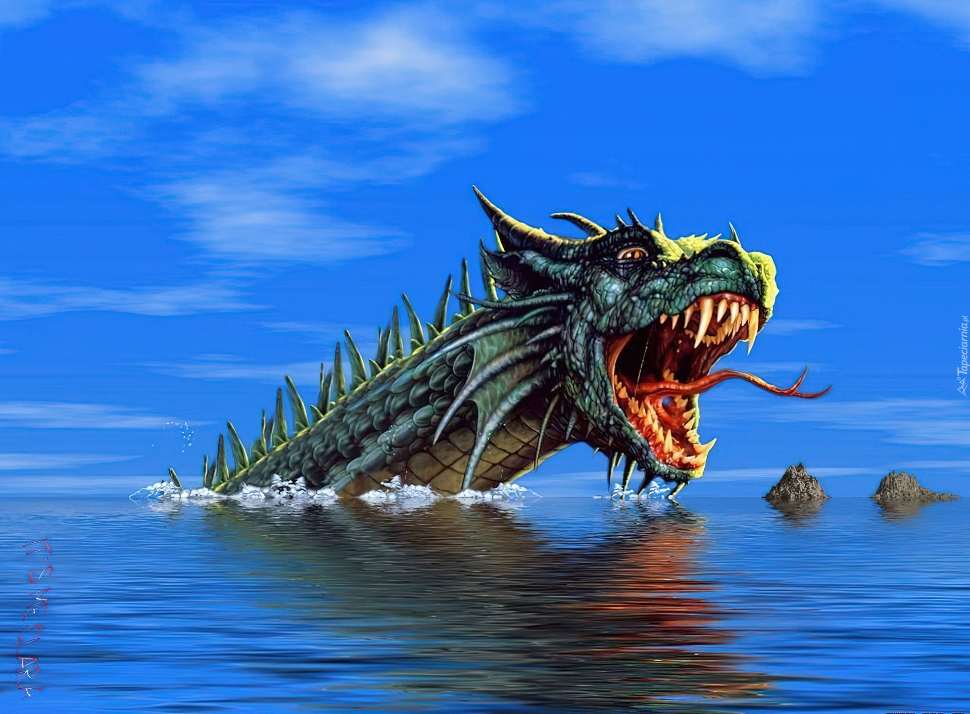 Edytor tapety: Smok, Głowa, Woda