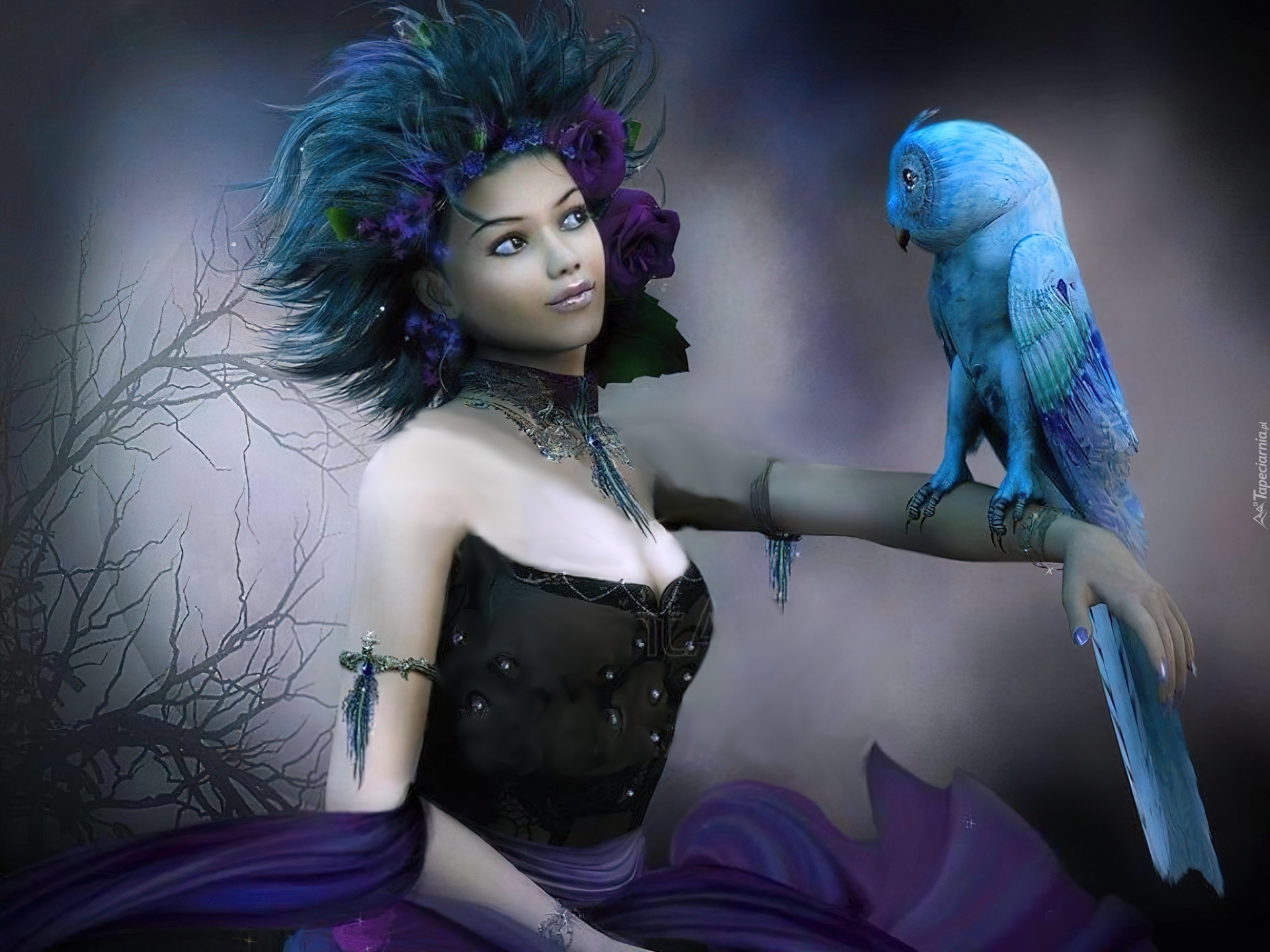 Edytor tapety: Kobieta, Niebieska, Sowa