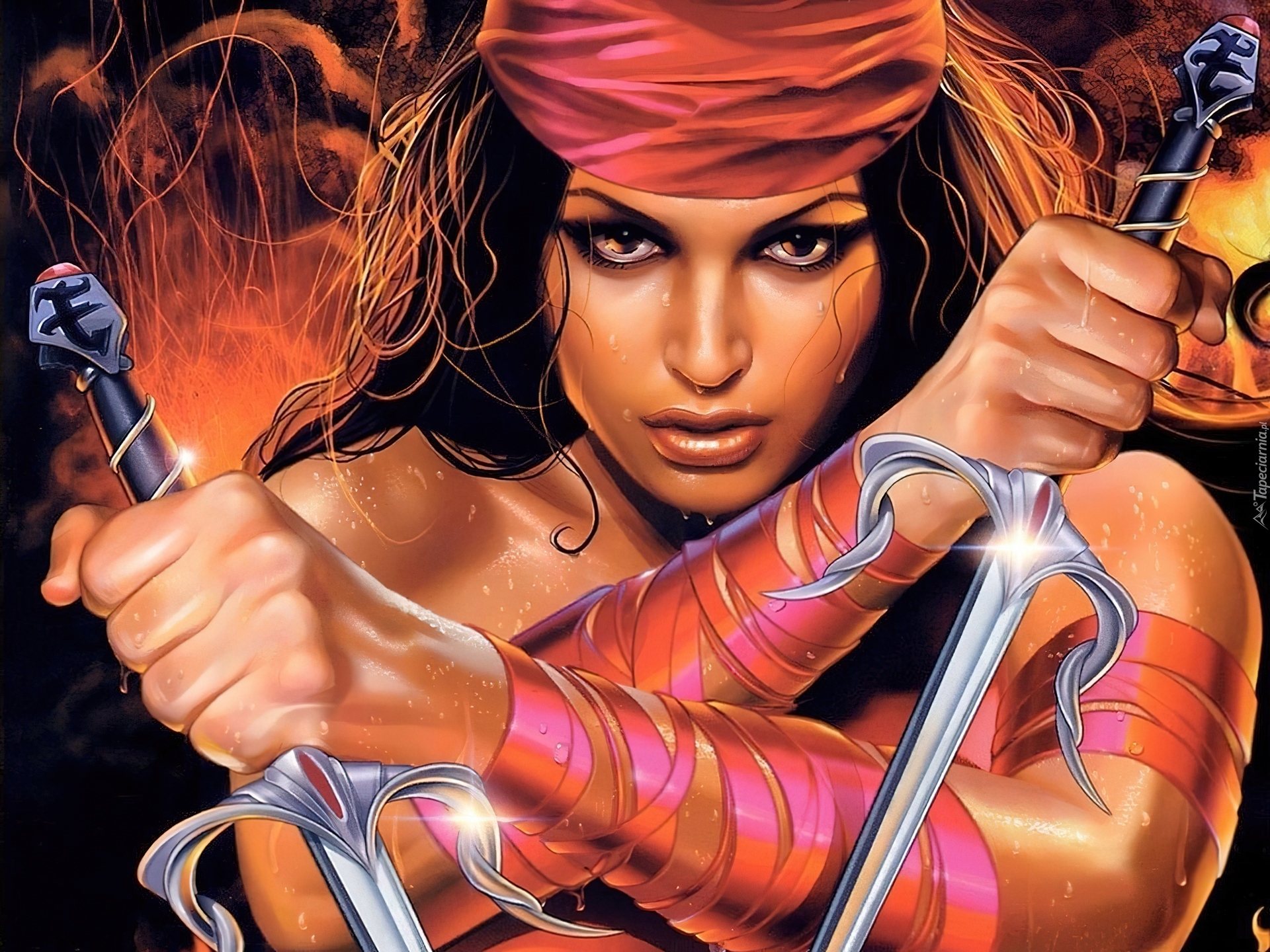 Edytor tapety: Kobieta, Wojownik, Miecze