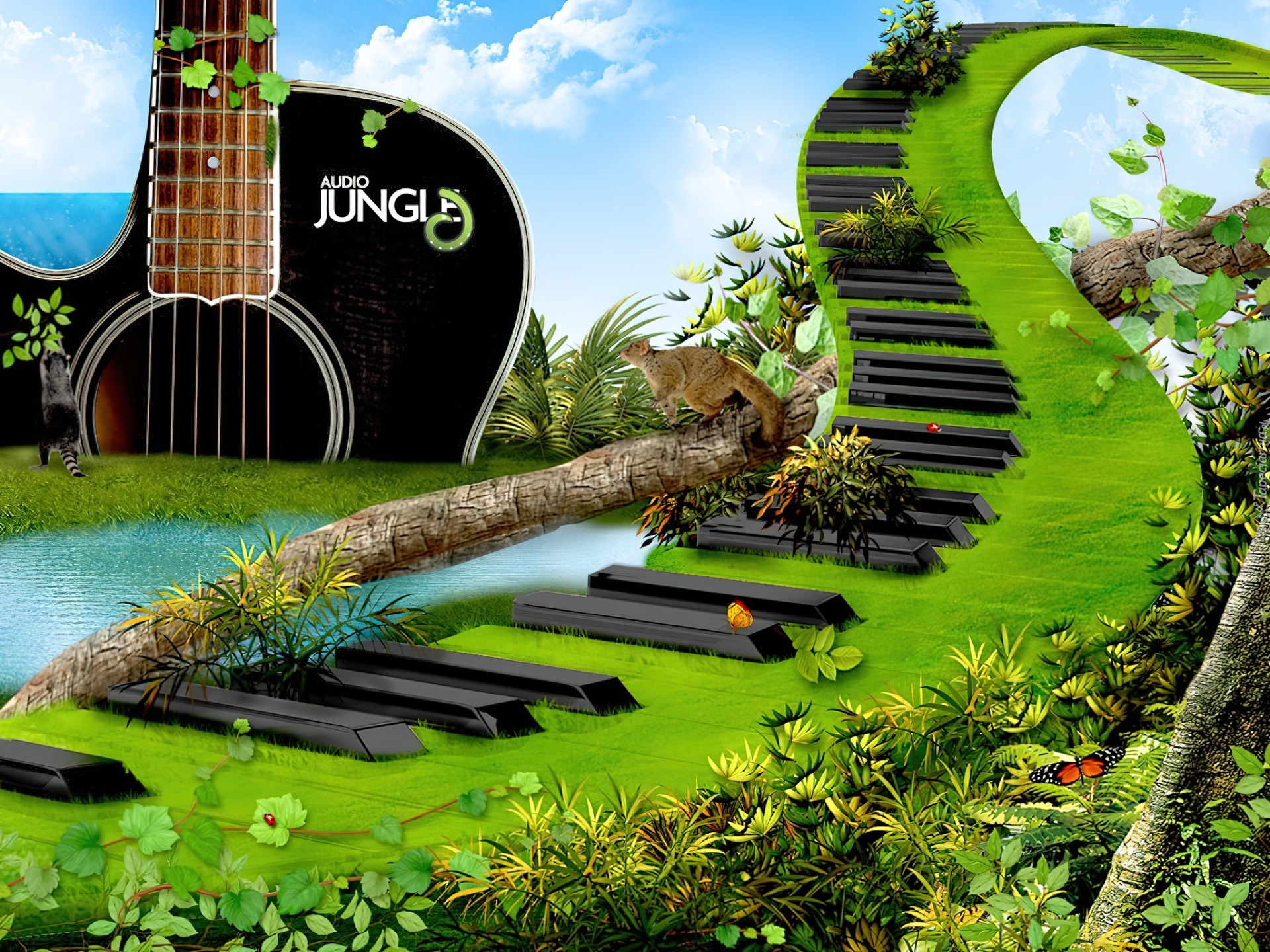 Edytor tapety: Dżungla, Gitara, Klawisze