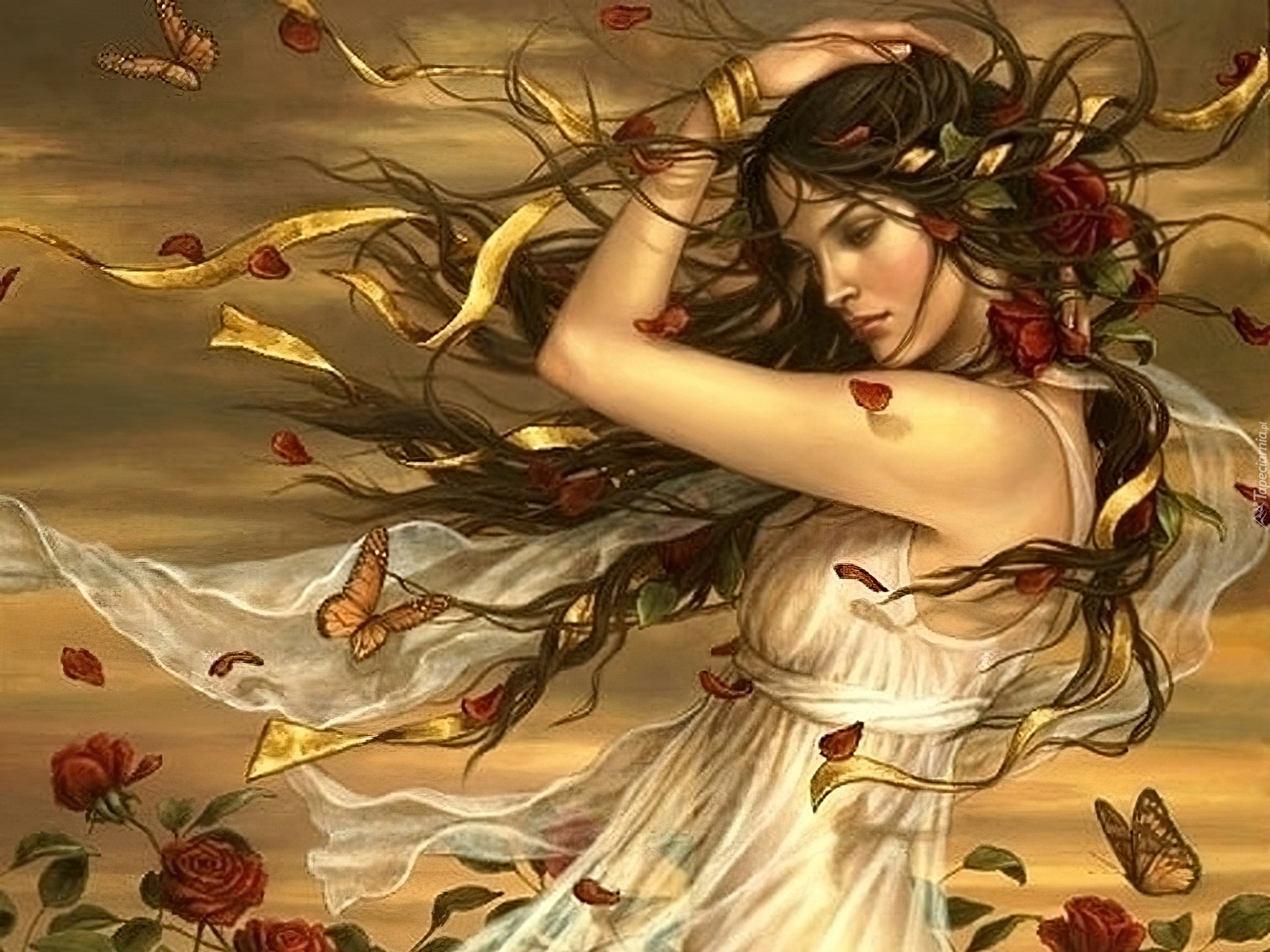 Edytor tapety: Kobieta, Włosy, Kwiaty