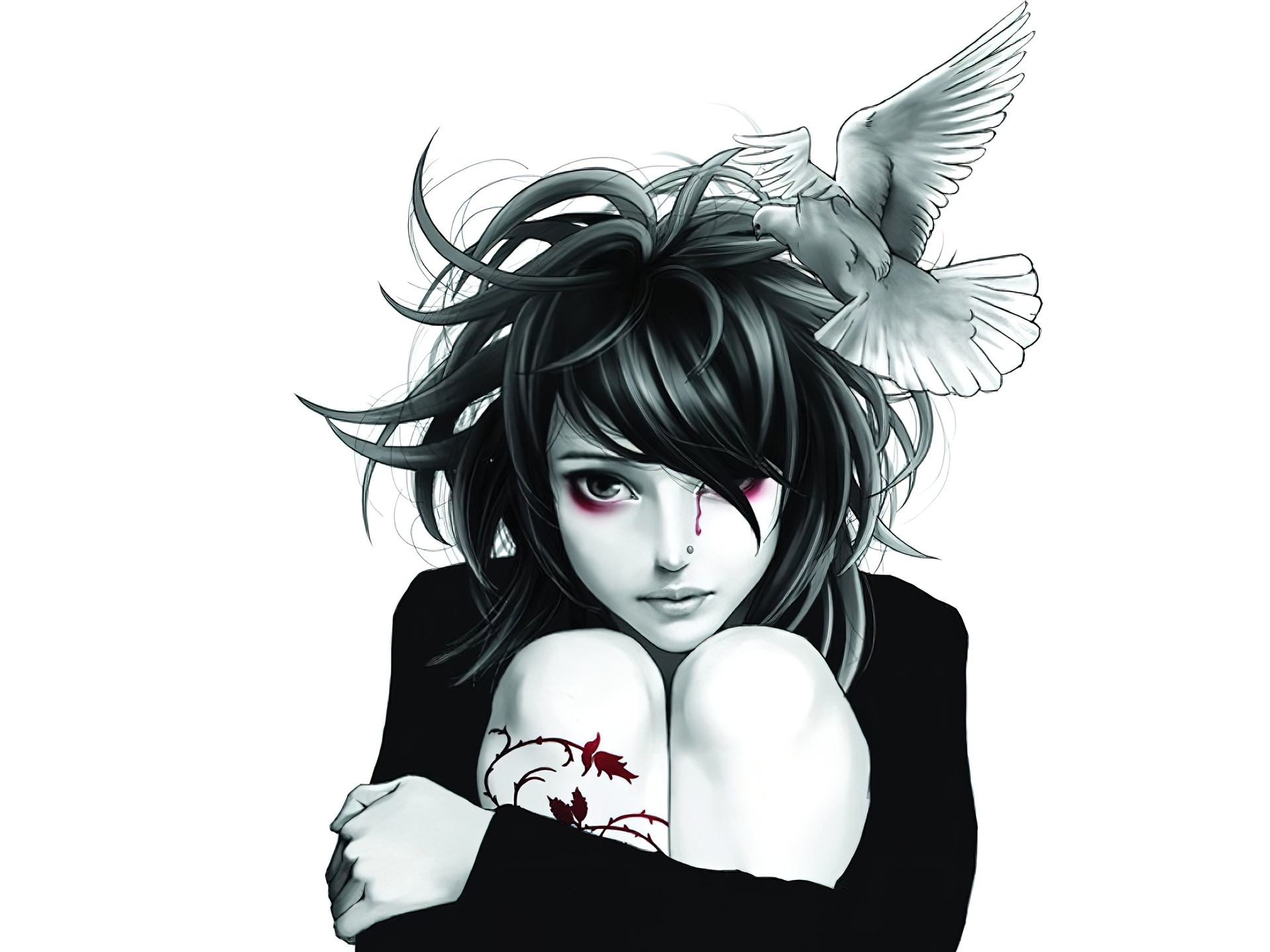 Edytor tapety: Dziewczyna, Smutek, Ptak