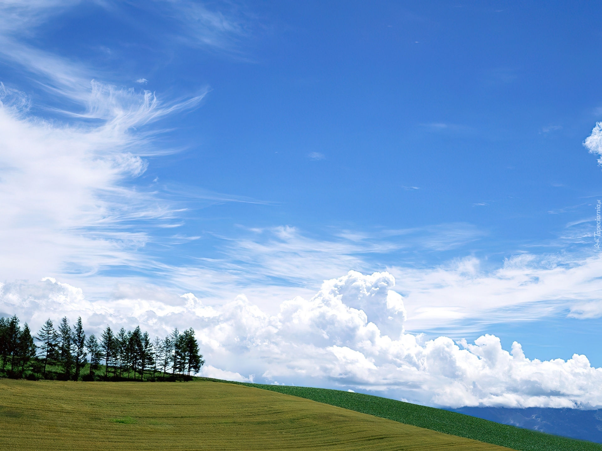 Edytor tapety: Żółto, Zielone, Pole, Drzewka, Błękitne, Niebo