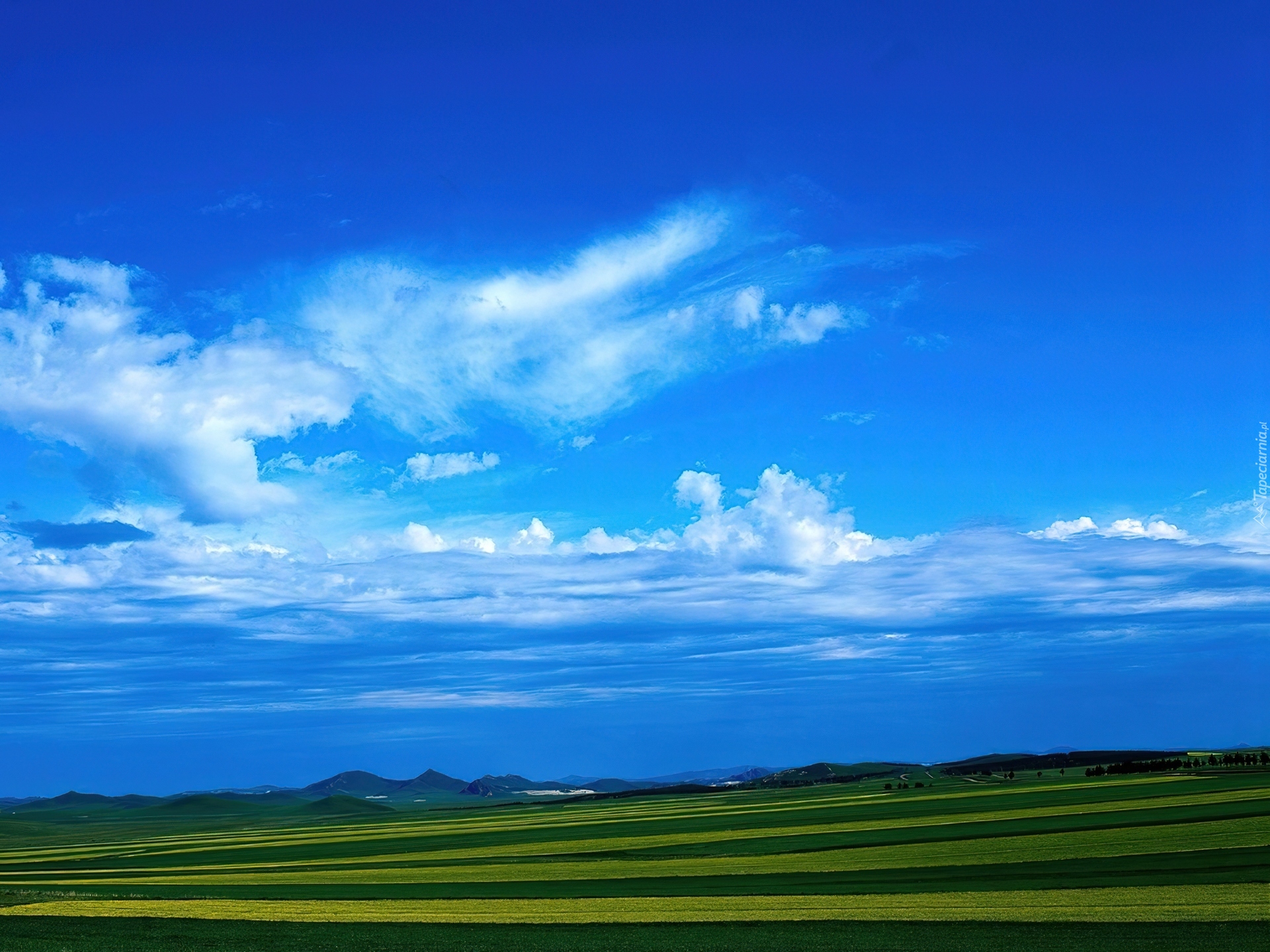 Edytor tapety: Pole, Zielone, Zagony, Błękitne, Niebo