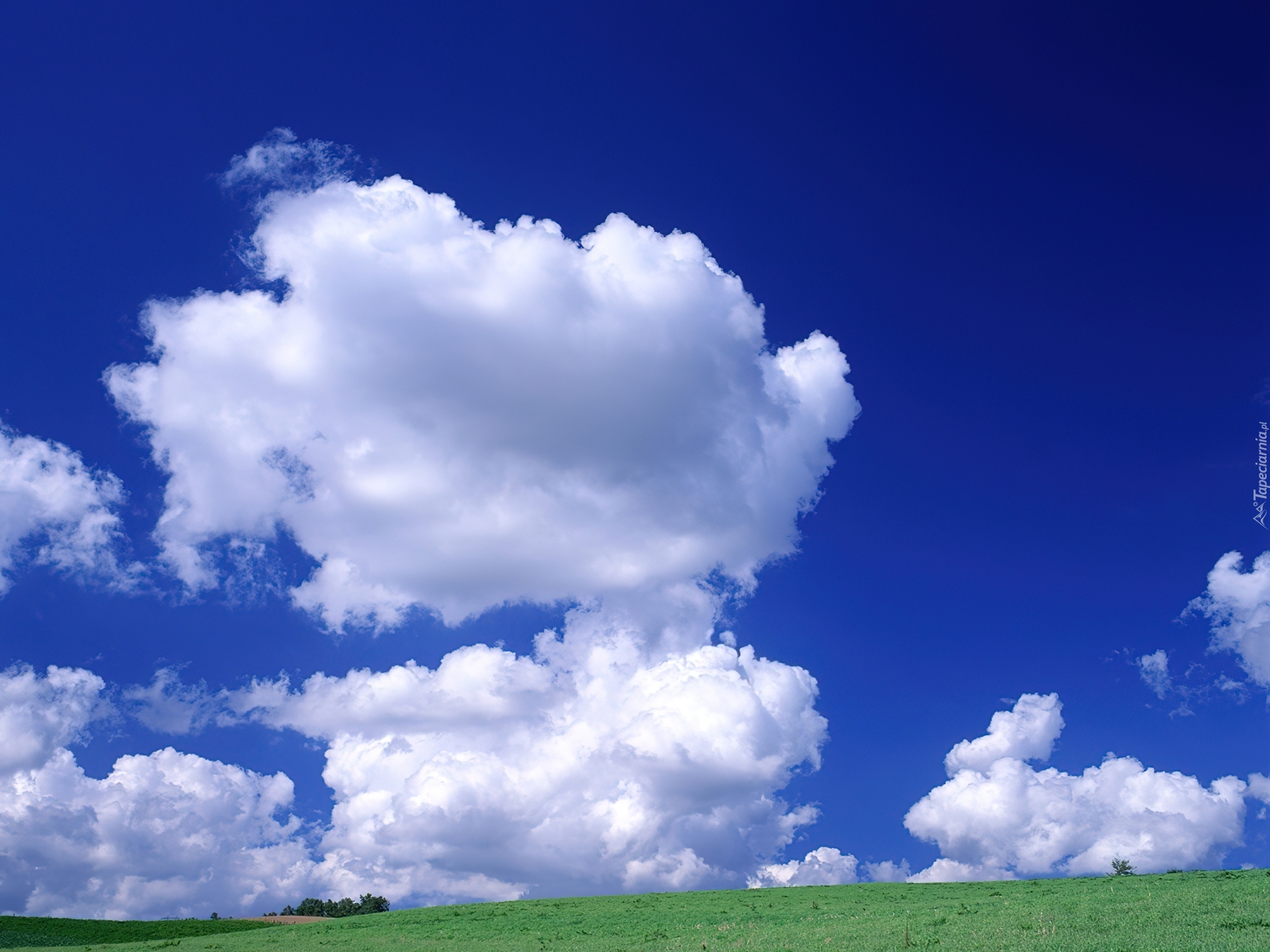 Edytor tapety: Niebo, Białe, Chmurki, Zielone, Pola