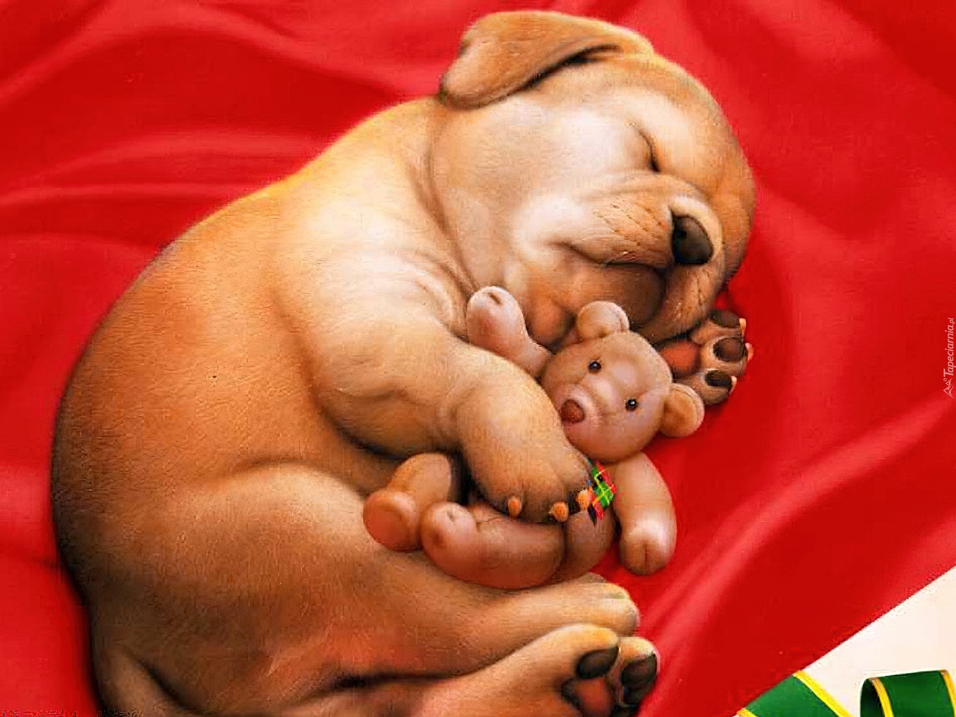 Edytor tapety: Śpiący, Piesek, Maskotka